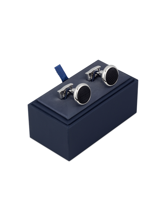 The Woven Round Cufflinks Black