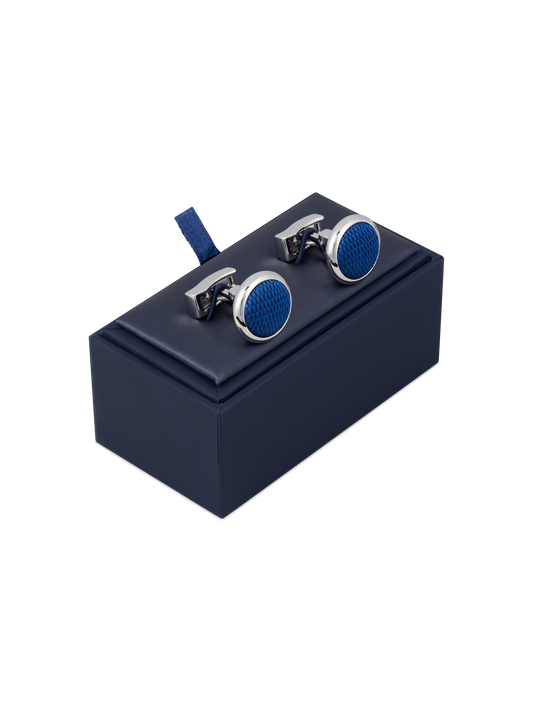 The Woven Round Cufflinks Blue