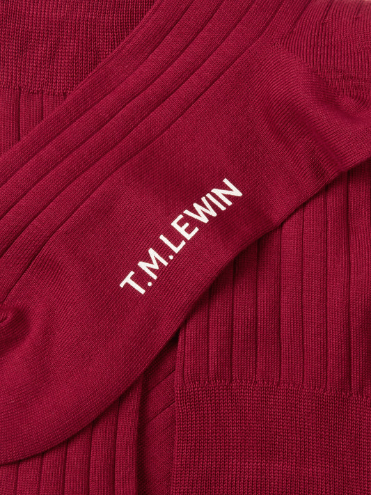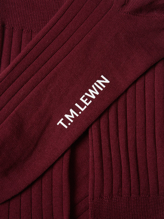 Sold out3 for £24Mercerised Cotton Ribbed Socks Burgundy Collar