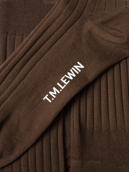 3 for £24Mercerised Cotton Ribbed Socks Brown Collar