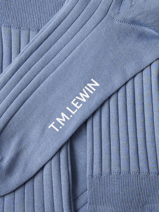 3 for £24Mercerised Cotton Ribbed Socks Denim Collar
