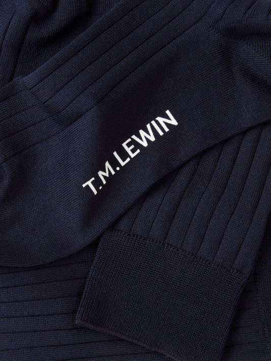 3 for £24Mercerised Cotton Ribbed Socks Navy Collar