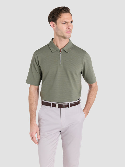 New InThe Jacquard Zip-Neck Polo Olive