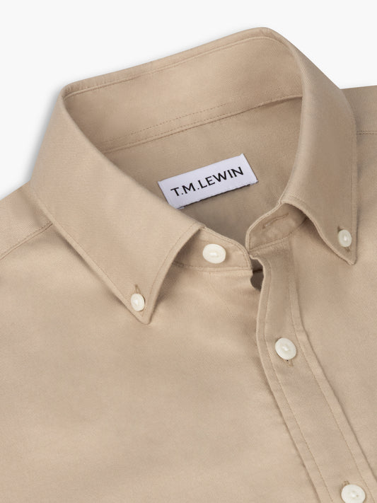 The Oxford Long Sleeve Shirt Stone Slim Fit Button-Down Collar