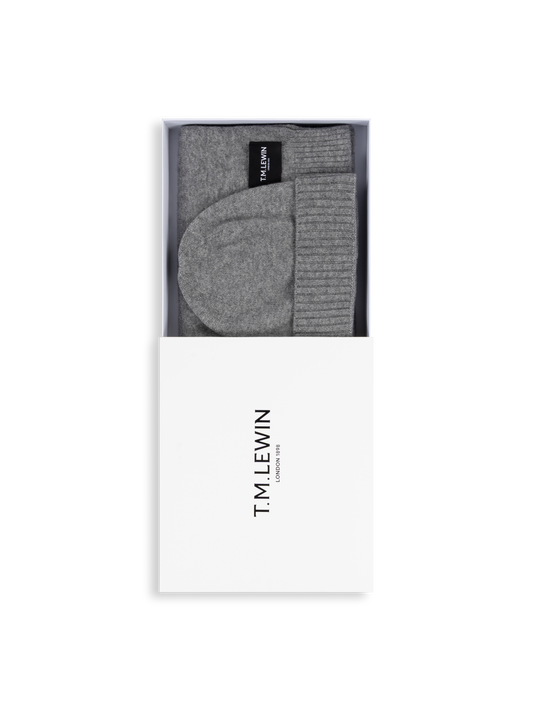 The Wool Beanie & Scarf Gift Set Grey Marl