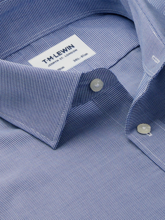 OutletThe Non-Iron Dobby Shirt Navy Blue Super Fitted Classic Collar