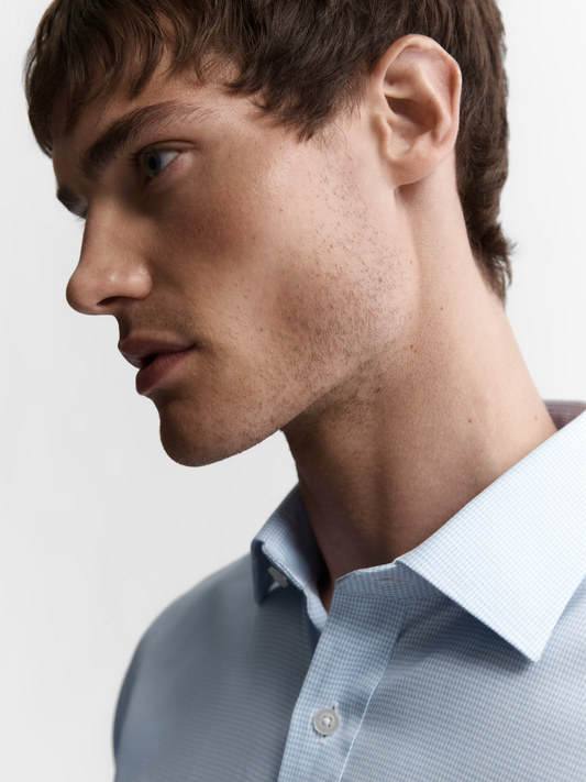 The Non-Iron Plain Weave Shirt Blue Fitted Semi-Cutaway Collar