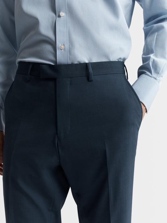 Non-Iron Blue Poplin Regular Fit Double Cuff Classic Collar Shirt Blue