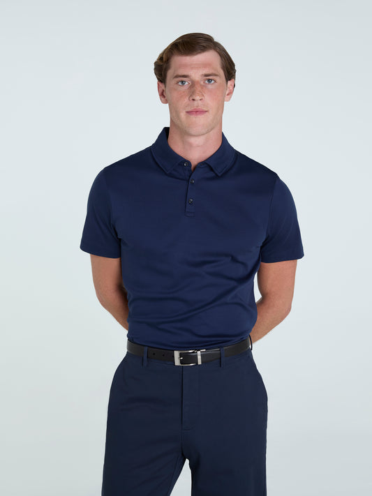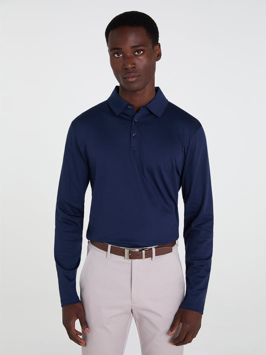 2 for £60The Long Sleeve Smart Jersey Polo Navy Blue