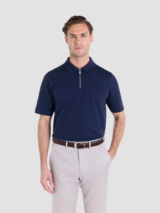 New InThe Jacquard Zip-Neck Polo Navy