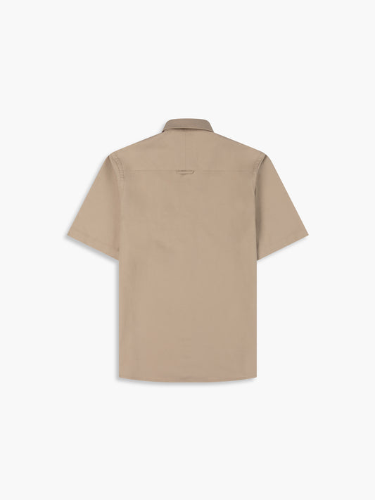 The Oxford Short Sleeve Shirt Stone Slim Fit Button-Down Collar