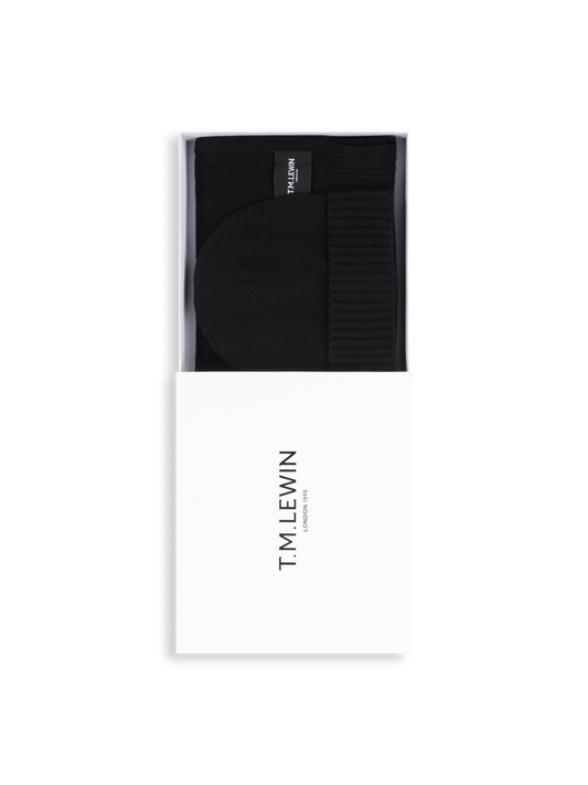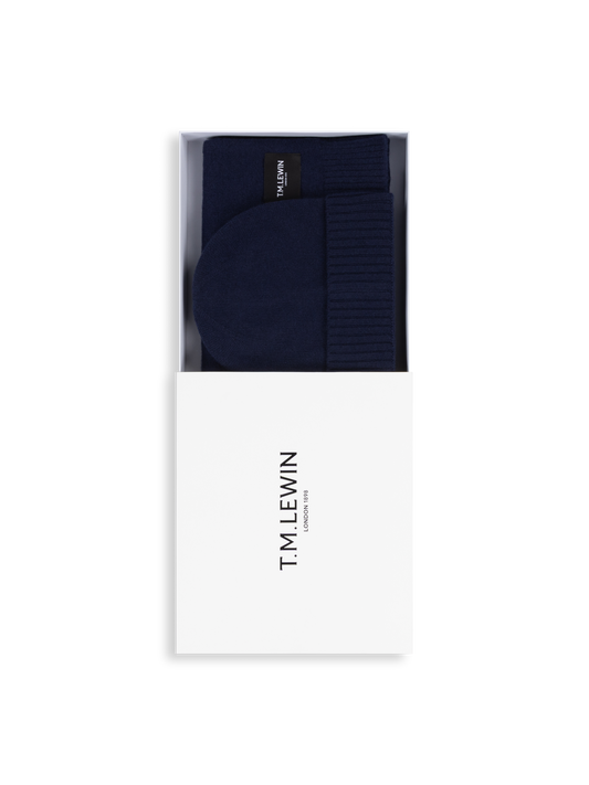 The Wool Beanie & Scarf Gift Set Navy Collar
