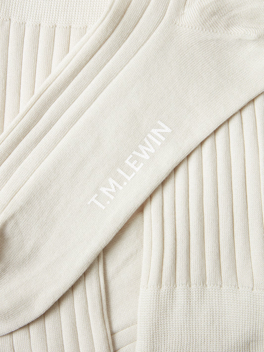 New In3 for £24Mercerised Cotton Ribbed Socks Stone Collar