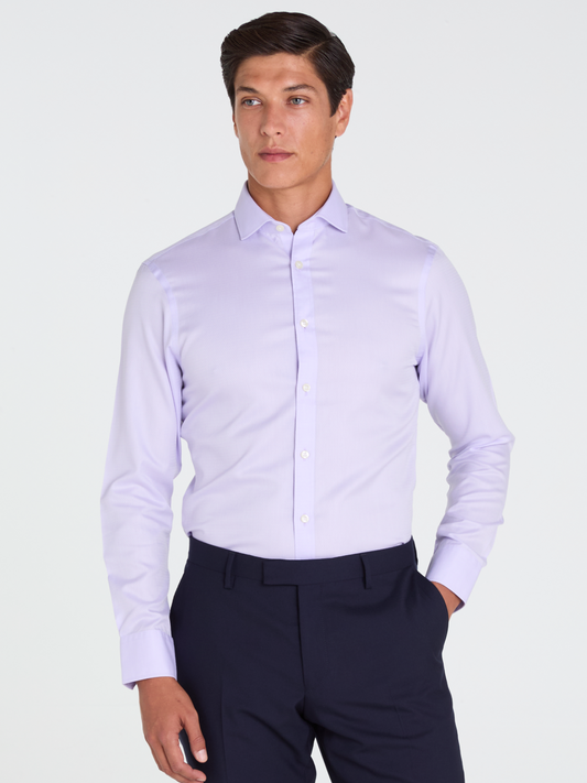 4 for £160The Non-Iron Herringbone Shirt Purple Slim Fit Semi-Cutaway Collar