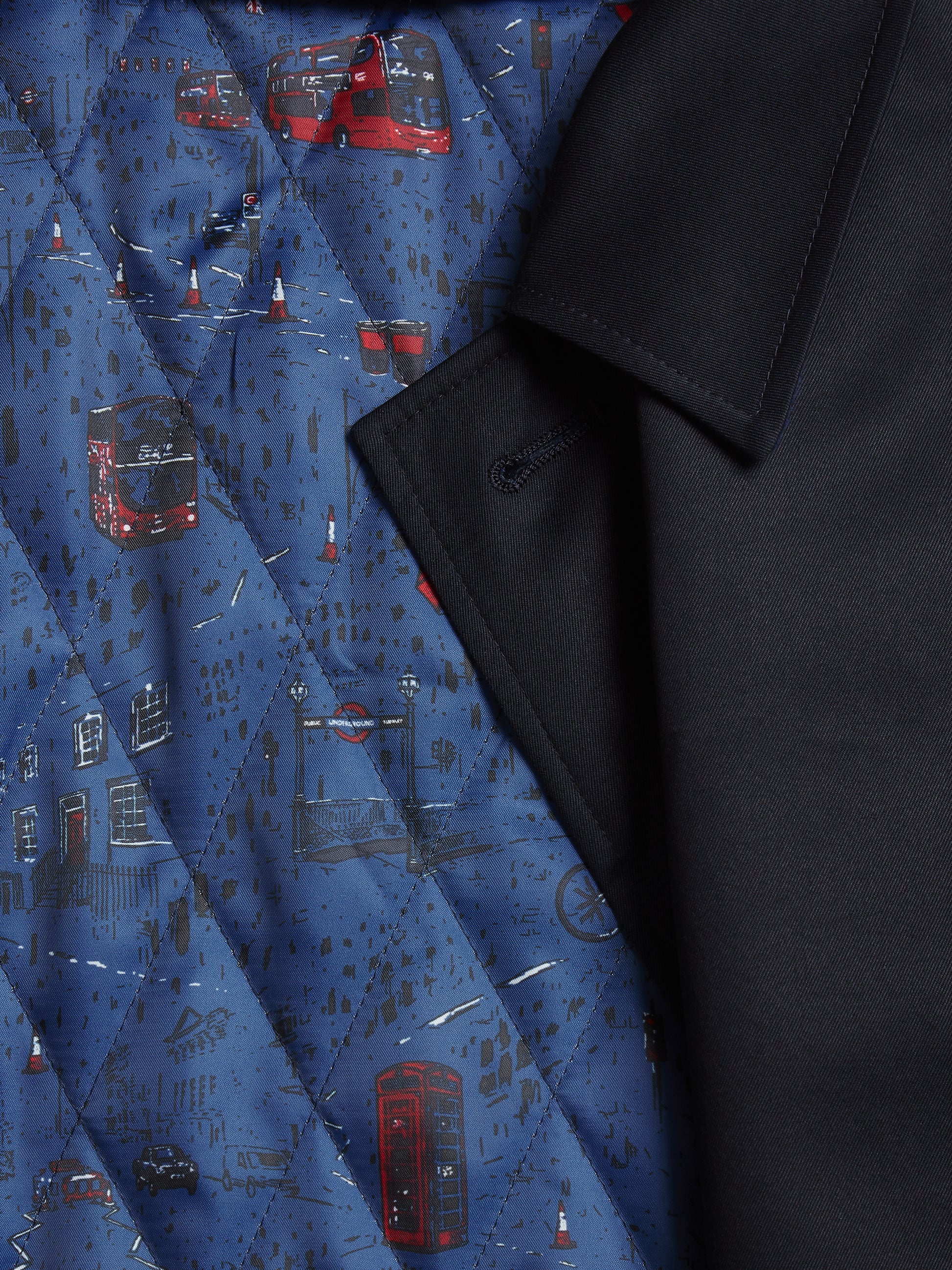 The jacket is crafted from pure cotton and padded with Primaloft, an insulation originally developed for the US Army, making it perfect for changeable spring weather. The inside is quilted and adorned with our exclusive London print, adding a flash of colour when worn open.
