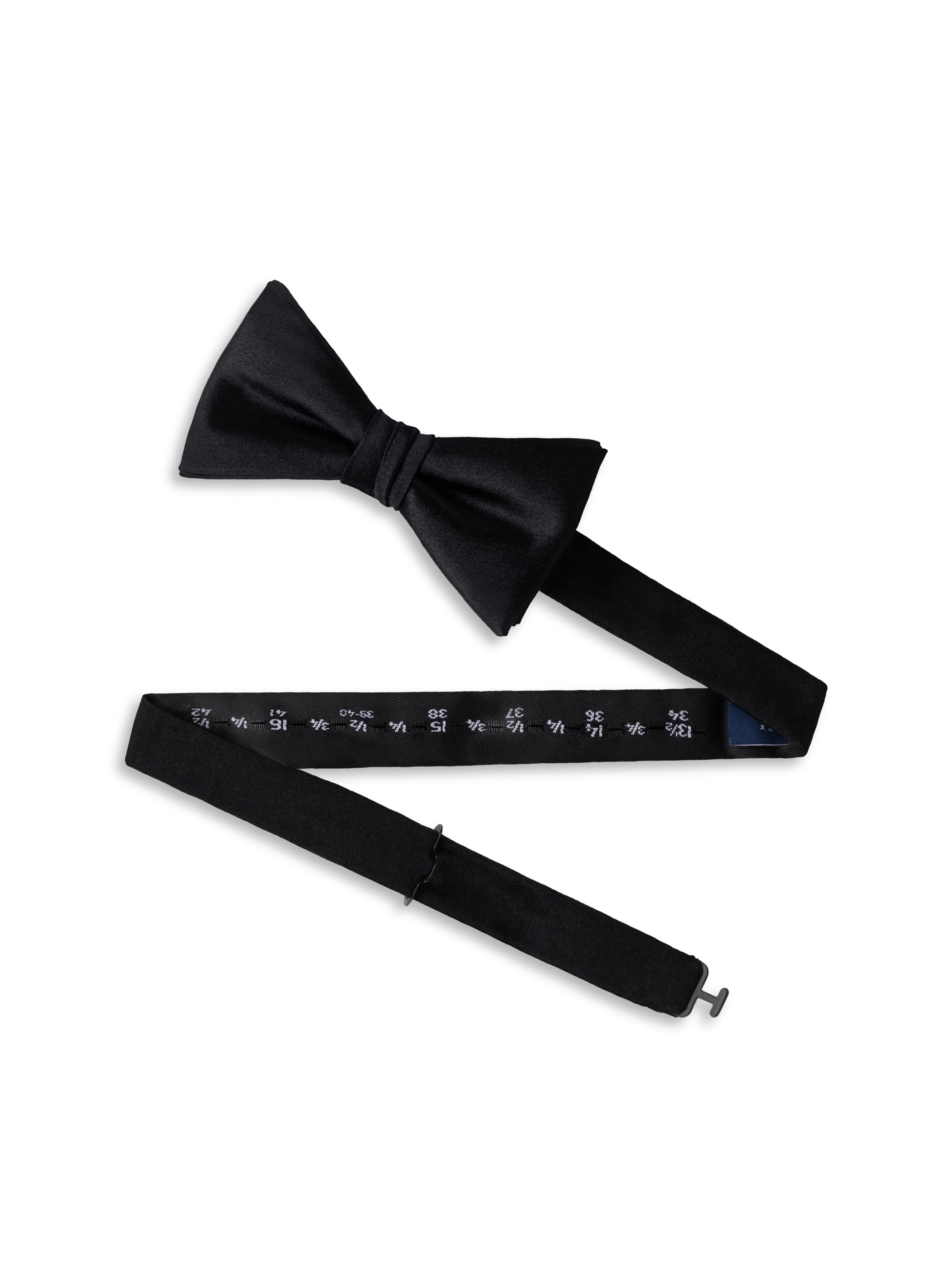 Our black satin ready-tied bow tie is conveniently pre-tied to ensure the perfect knot for those black tie occasions. The adjustable neck band fits sizes 13.5" to 20". This is better worn with a classic collar evening shirt to conceal the adjuster. T.M.Lewin bow ties are made from the finest woven silk and are all hand finished.