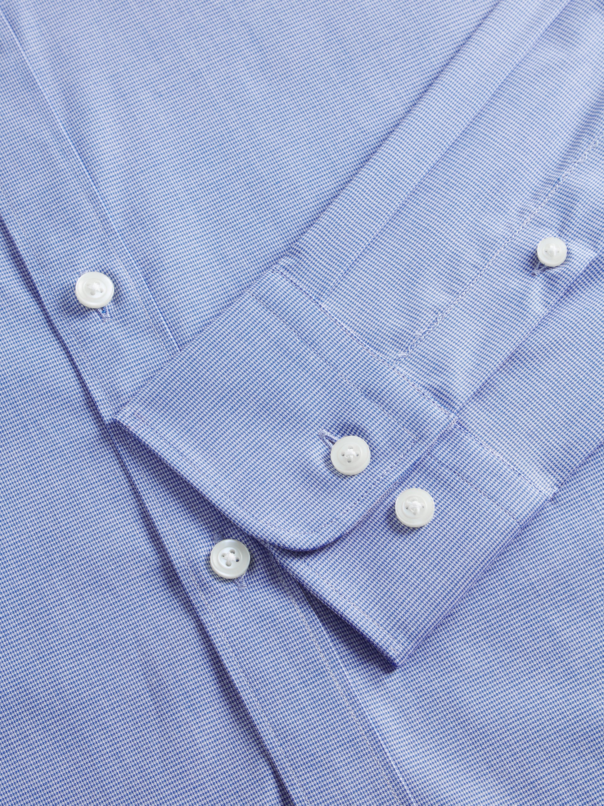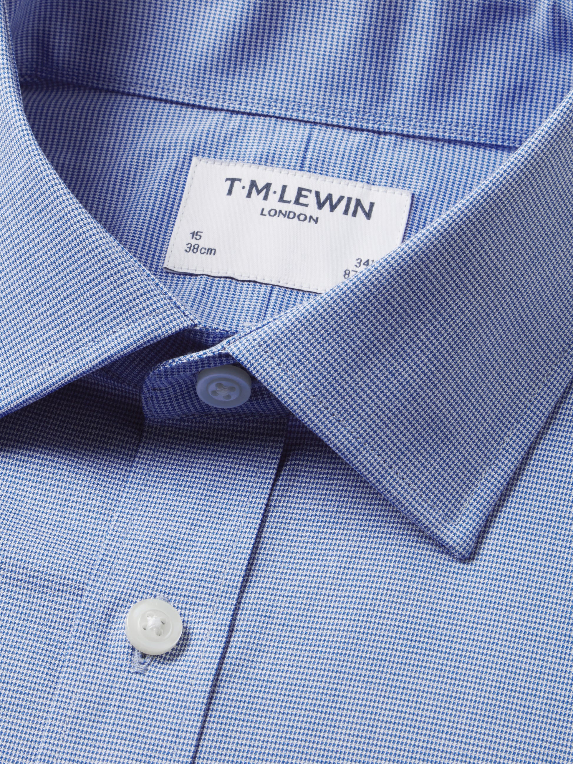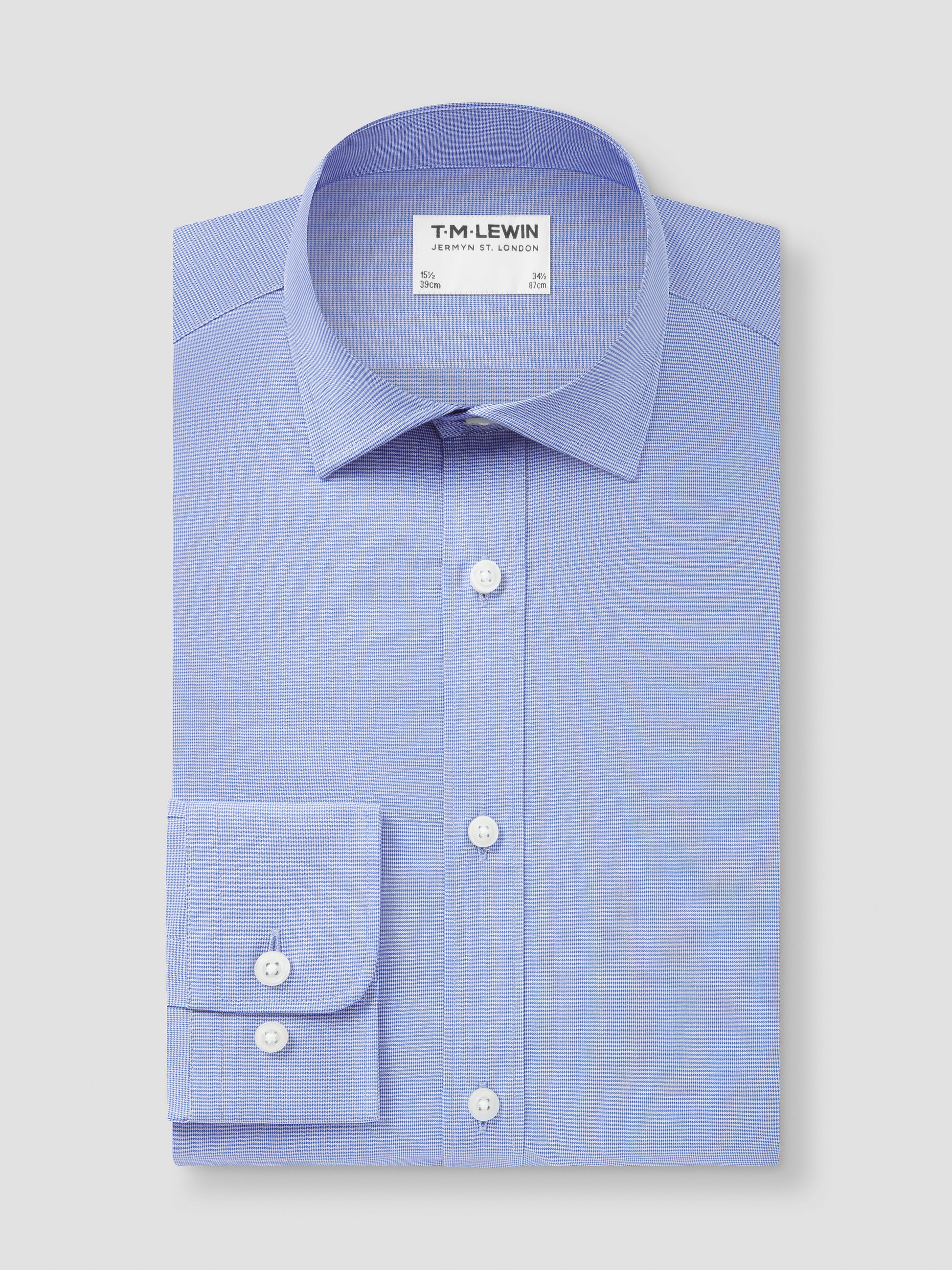 Part of our Max Performance collection, this blue puppytooth shirt will keep you looking impeccable throughout the day with its crease-resistant, plain-woven cotton blend.