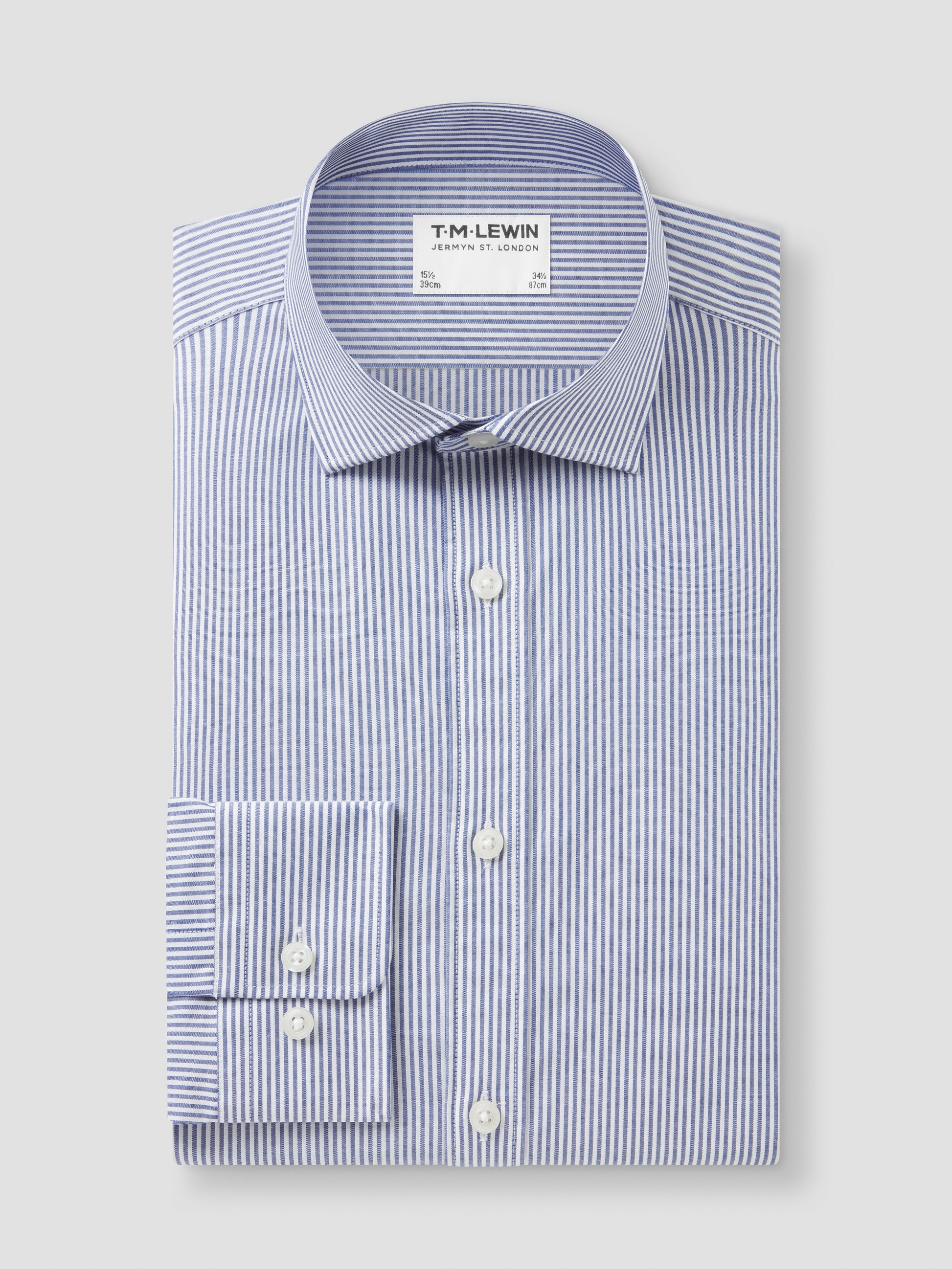 Part of our Max Performance collection, this plain-woven shirt showcases bold navy Bengal stripes, while the luxury cotton blend offers a hint of stretch for ease of movement during bustling office days.