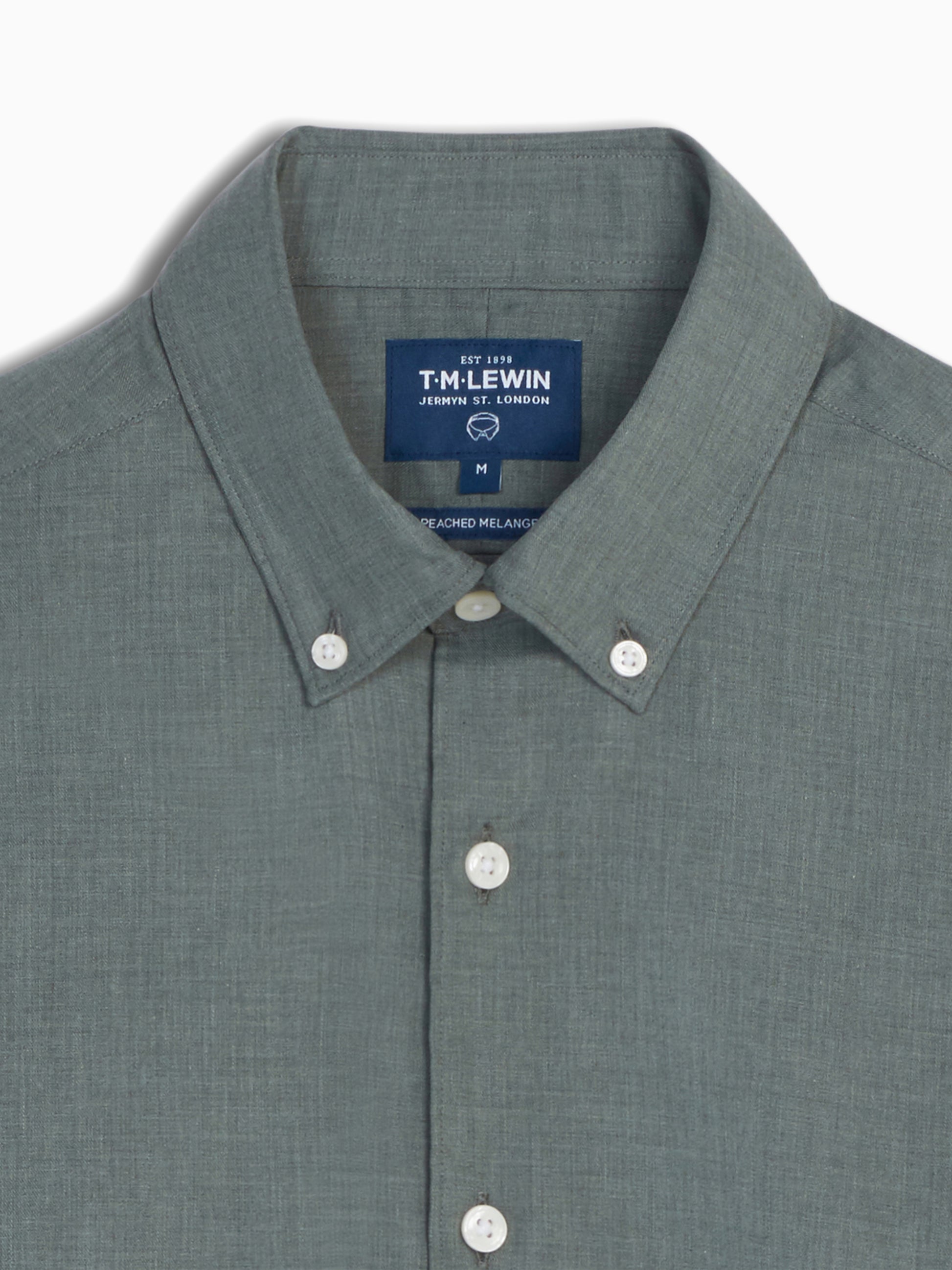 Bring style and comfort to your wardrobe with this olive-hued classic. Crafted with a carefully-selected melange twill fabric, this shirt is lightweight, breathable, and wrinkle resistant. The shirt features a simple and classic design for a timeless look. Perfect for everyday wear.