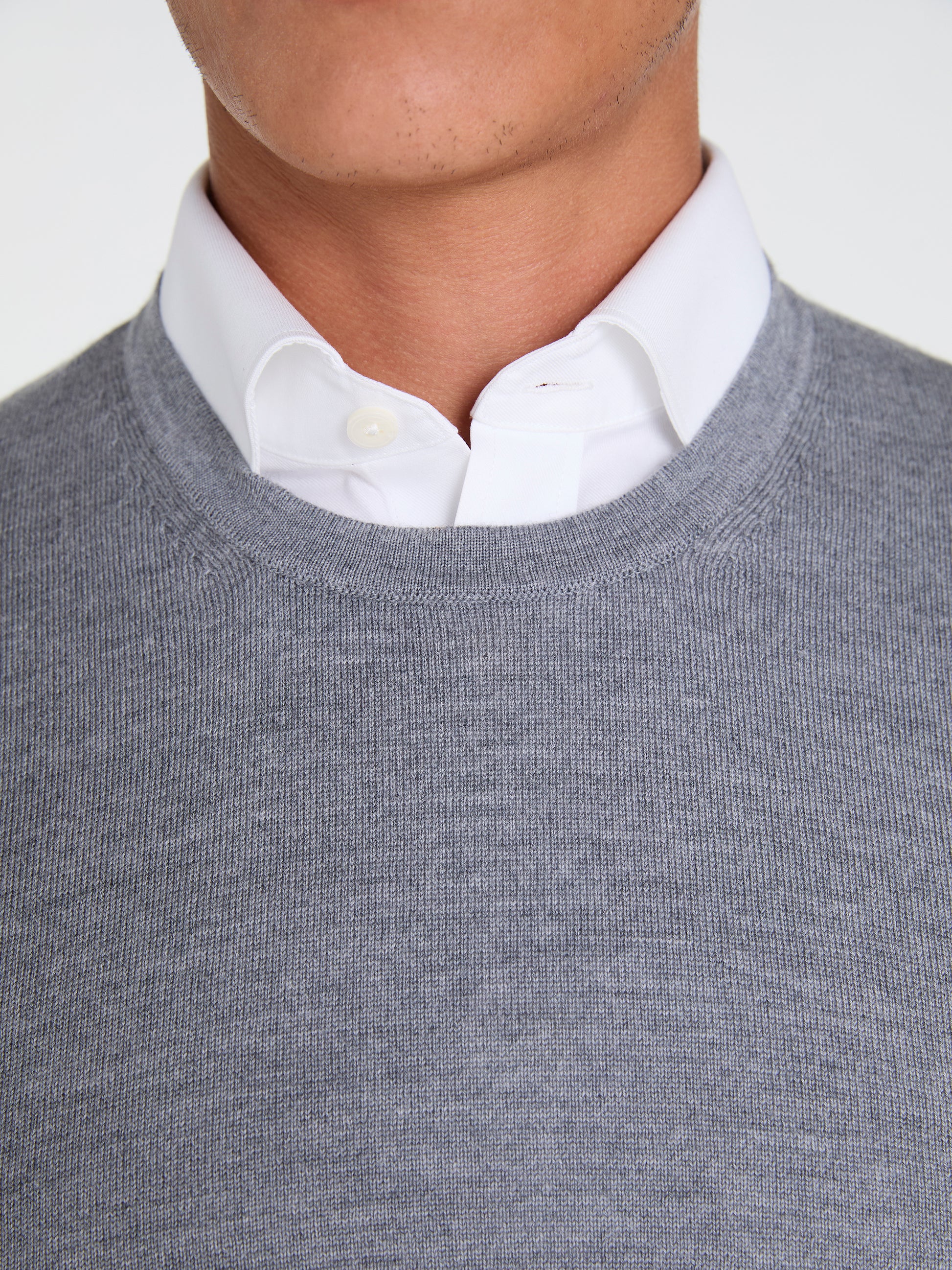 This crew neck jumper is crafted from soft, extra fine merino wool sourced from Italy. Known for its natural performance properties, merino wool wicks away moisture and regulates body temperature, making it ideal for year-round wear.