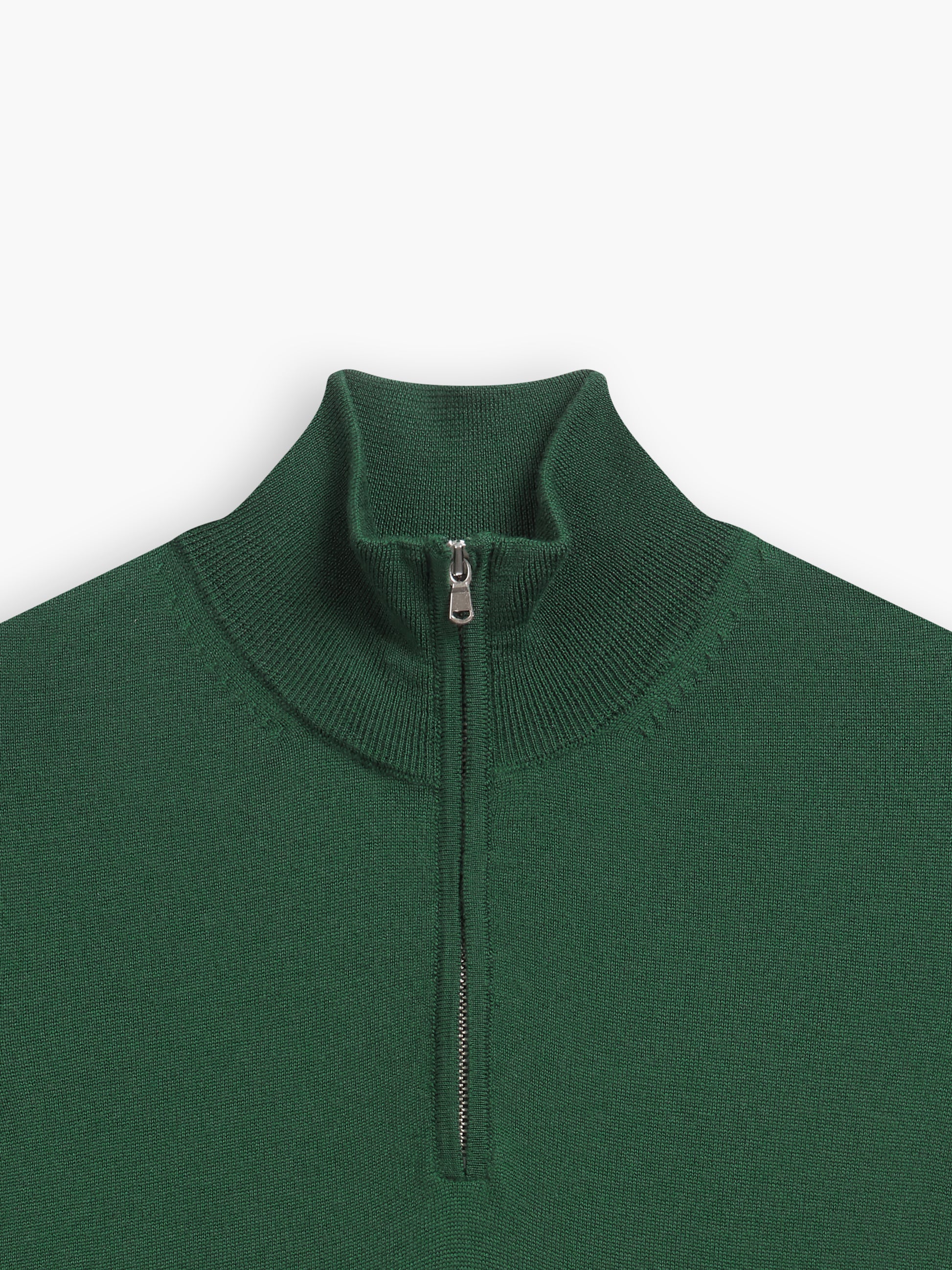 This quarter-zip jumper is crafted from soft, extra fine merino wool sourced from Italy. Known for its natural performance properties, merino wool wicks away moisture and regulates body temperature, making it ideal for year-round wear.