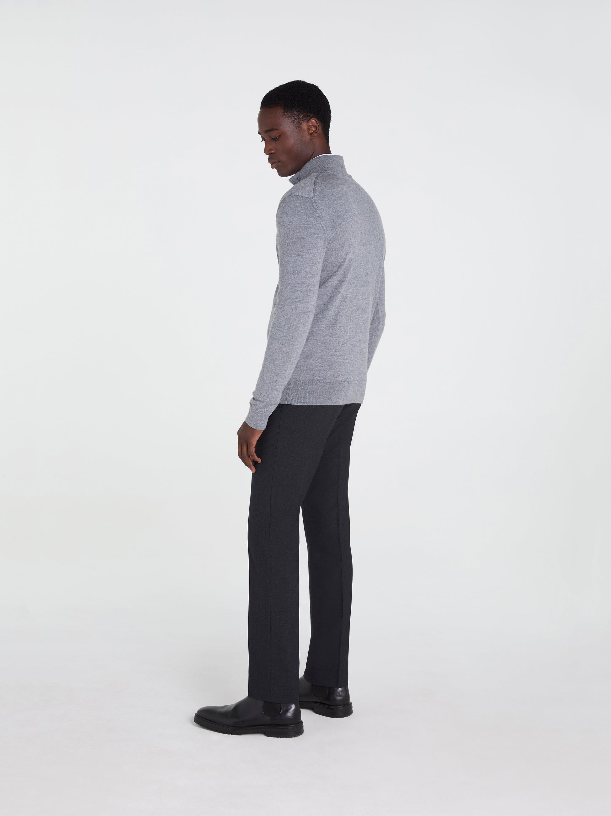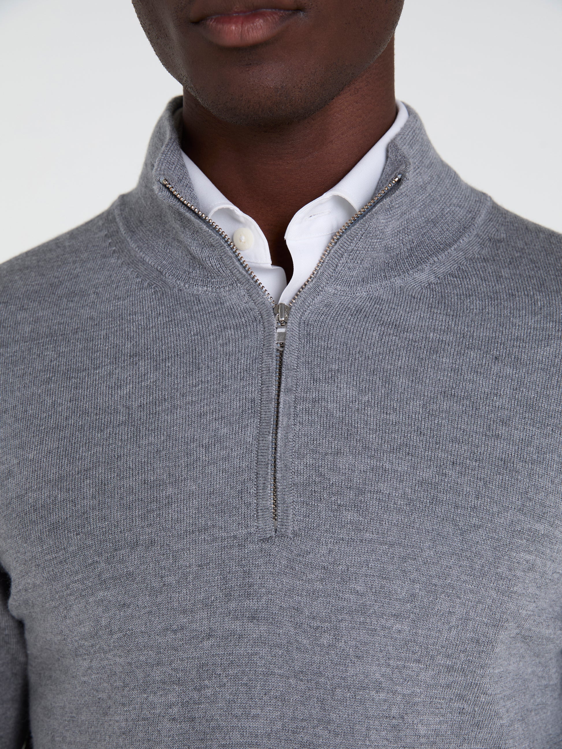 This quarter-zip jumper is crafted from soft, extra fine merino wool sourced from Italy. Known for its natural performance properties, merino wool wicks away moisture and regulates body temperature, making it ideal for year-round wear.