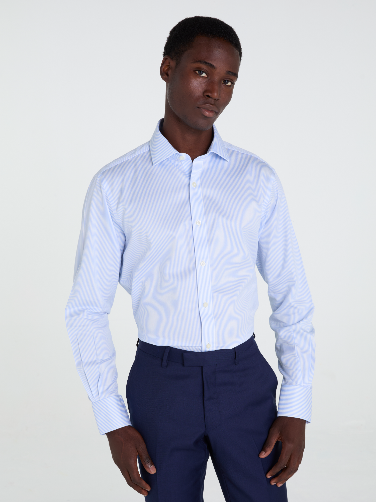 Cut from twill-woven cotton into a super-fitted silhouette, these light blue Bengal stripes are an absolute must-have for every rotation.