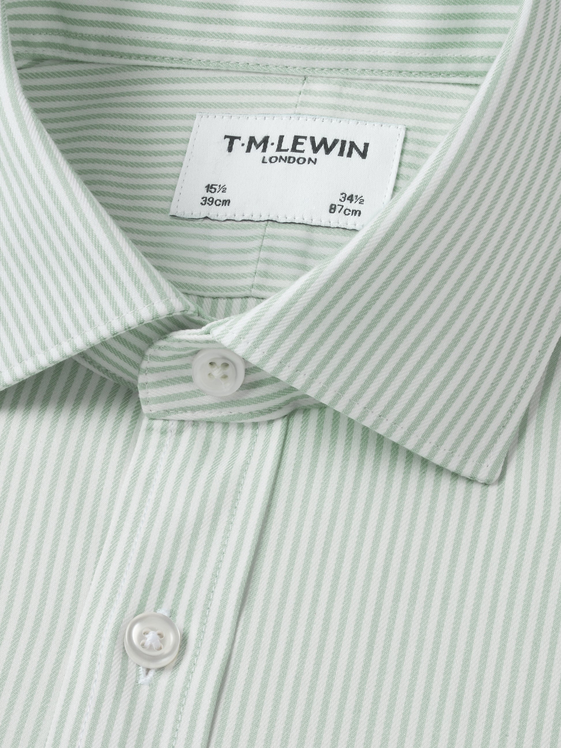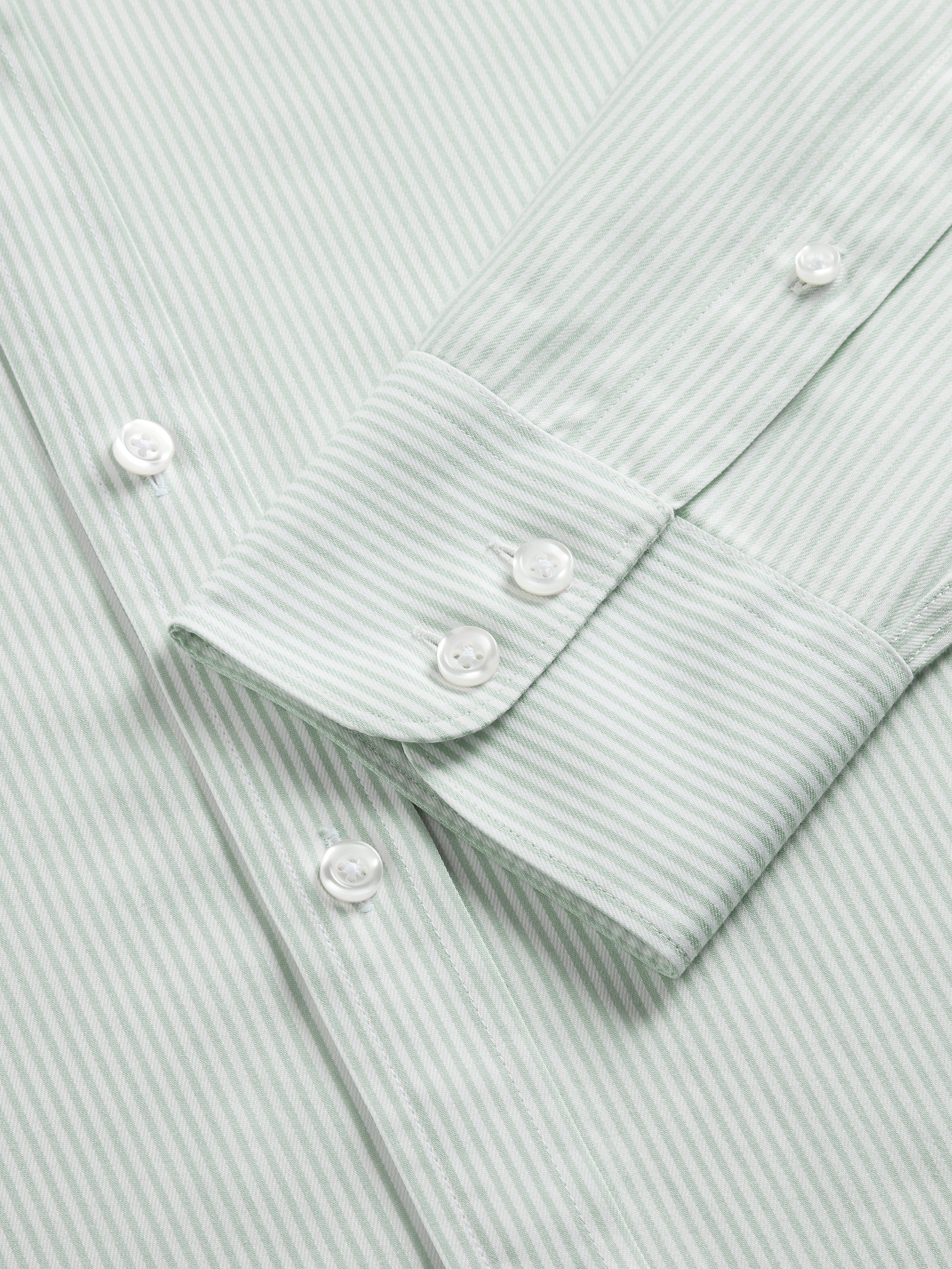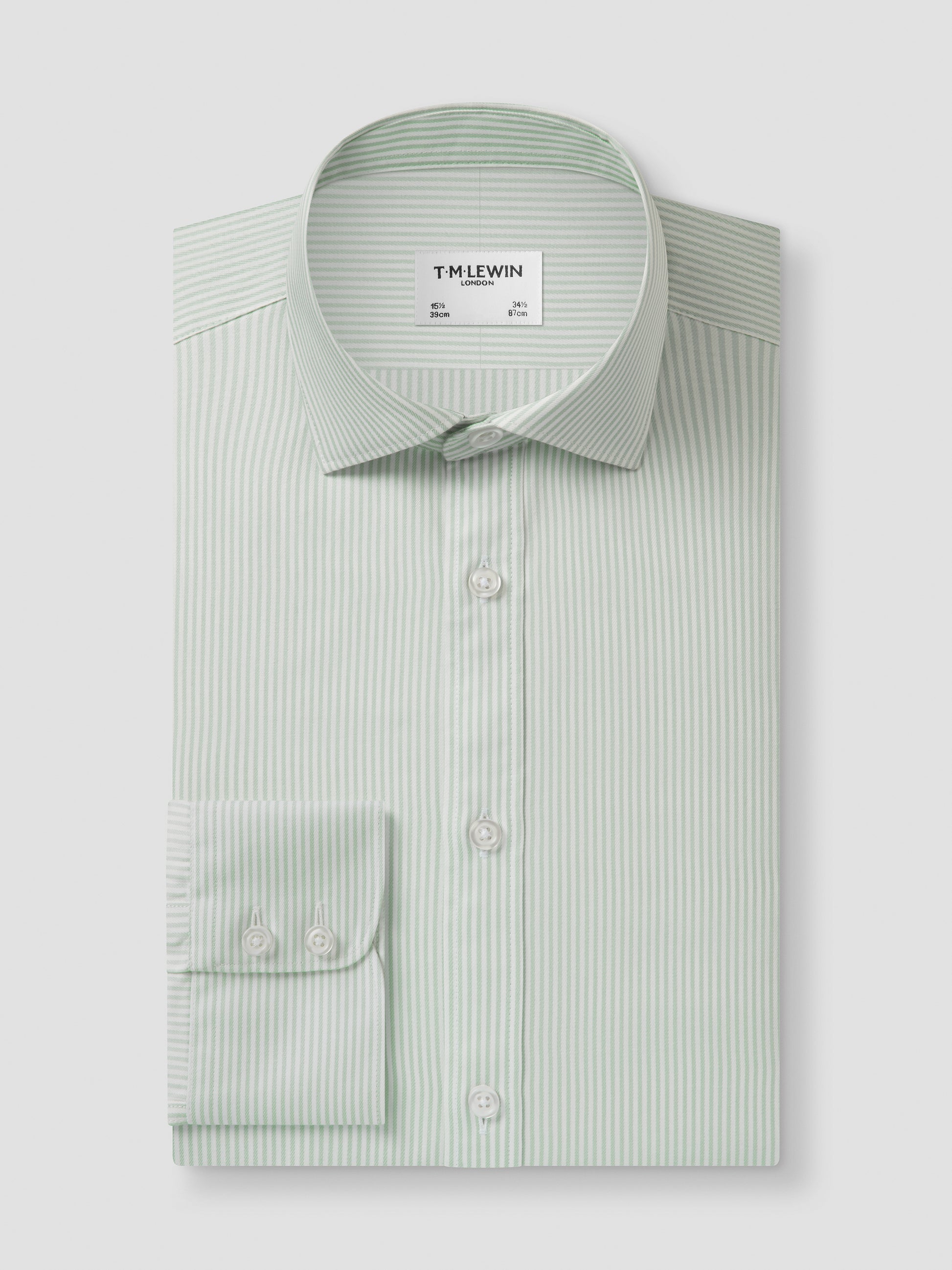 Cut from twill-woven cotton into a closely tapered fitted silhouette, these green Bengal stripes are an absolute must-have for every rotation.
