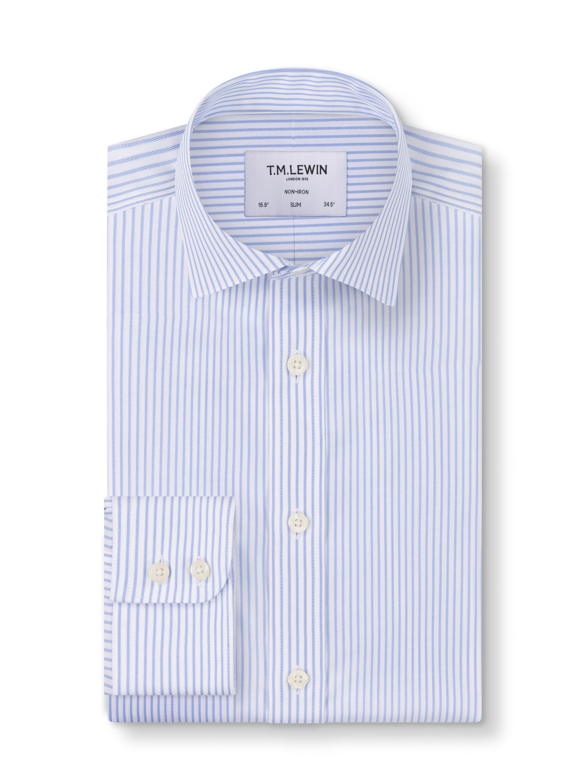 This slim fit striped shirt reflects our heritage in shirtmaking, delivering timeless style and the perfect fit. Crafted from two-ply cotton, sourced from America, it combines a luxuriously soft hand feel with a crisp, breathable poplin weave. Finished with our advanced non-iron treatment, it stays smooth and crease-free from morning meetings to evening events.