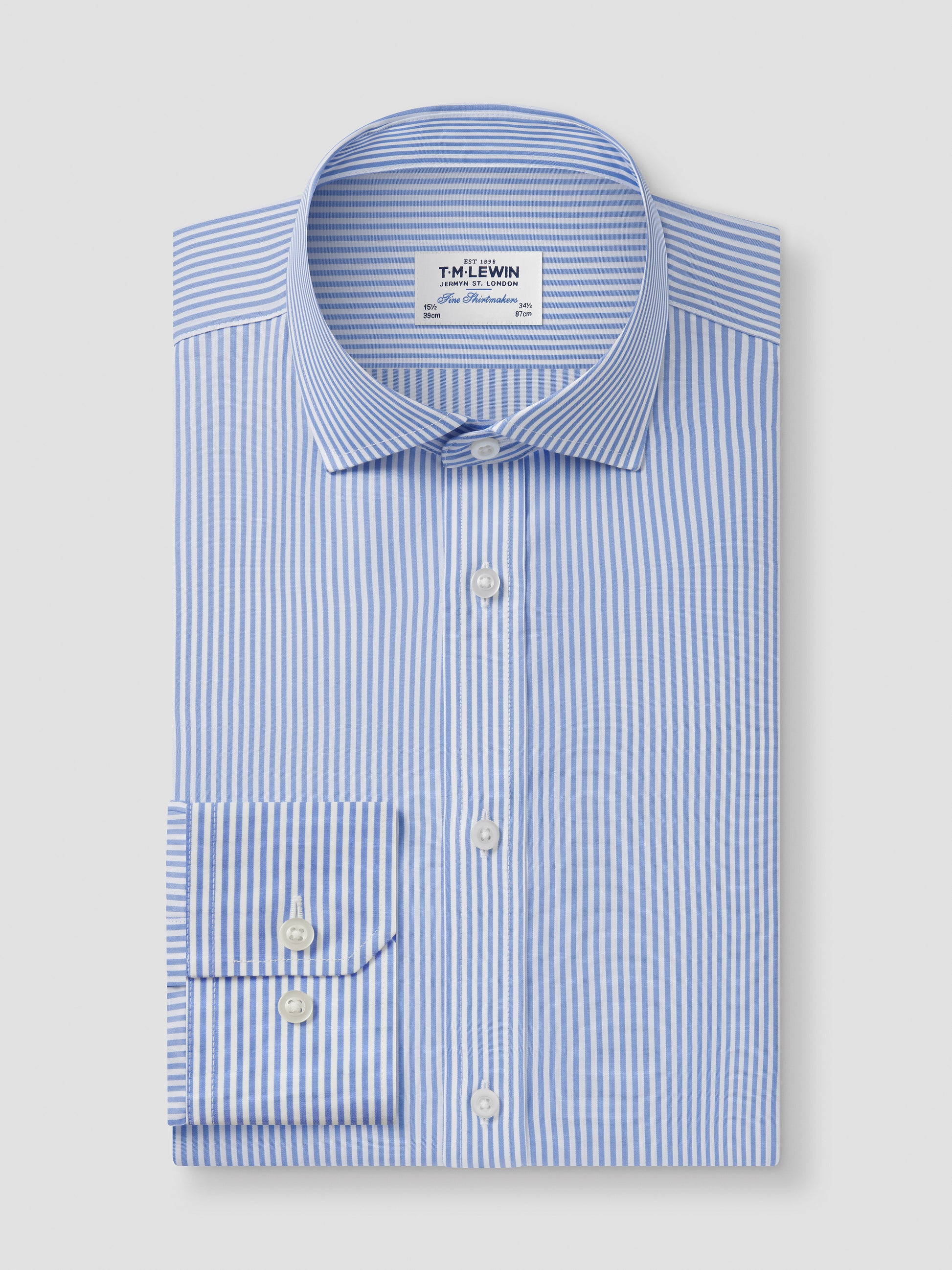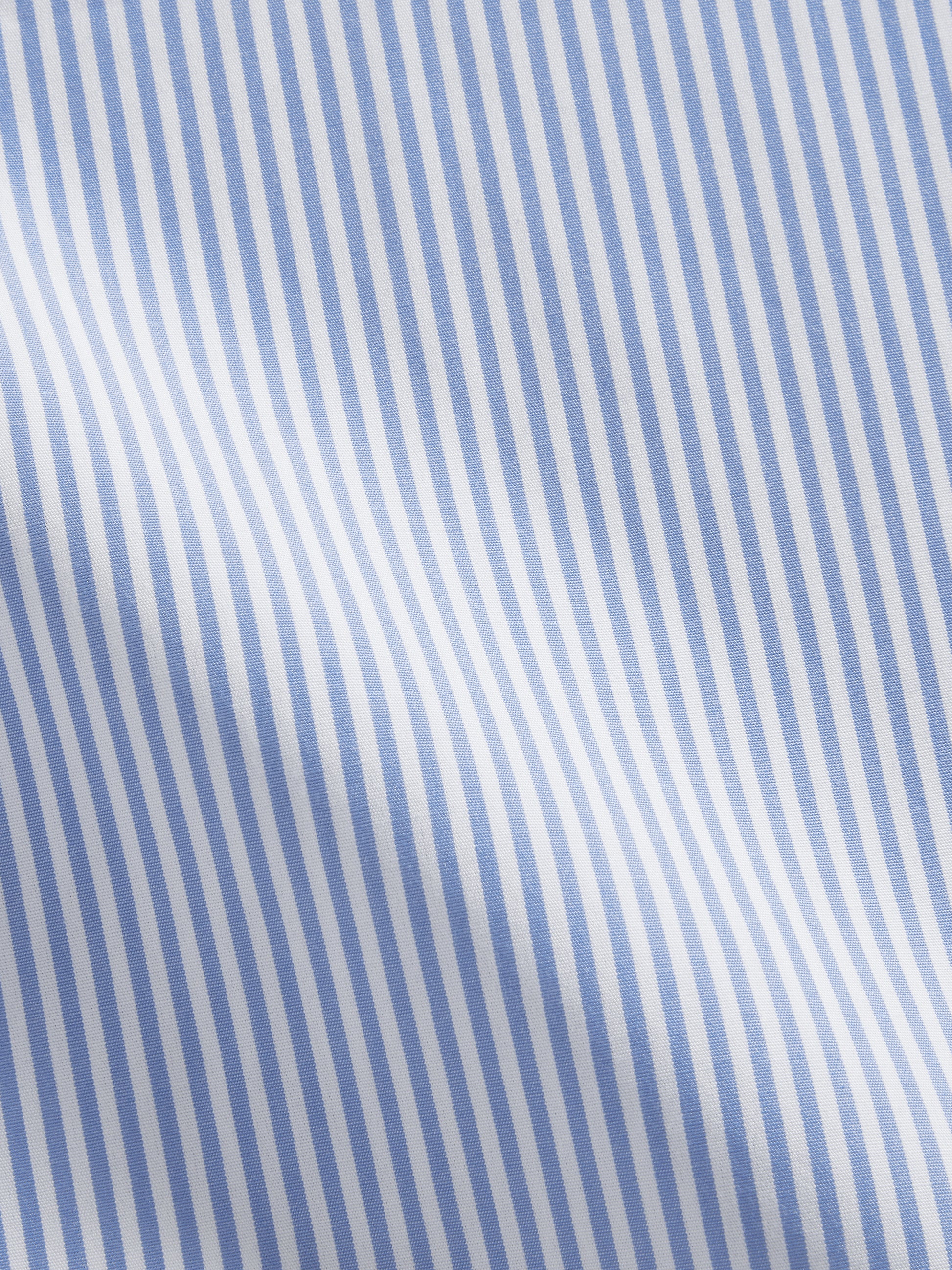 A must-have addition to your shirt rotation. With it's streamlined fit and lightweight poplin weave, this crease-resistant style is sure to keep you comfortable all day long; no matter what's on the agenda. Accented with classic light blue stripes, this shirt offers a sophisticated and polished look to suit the style needs of the workplace and beyond.