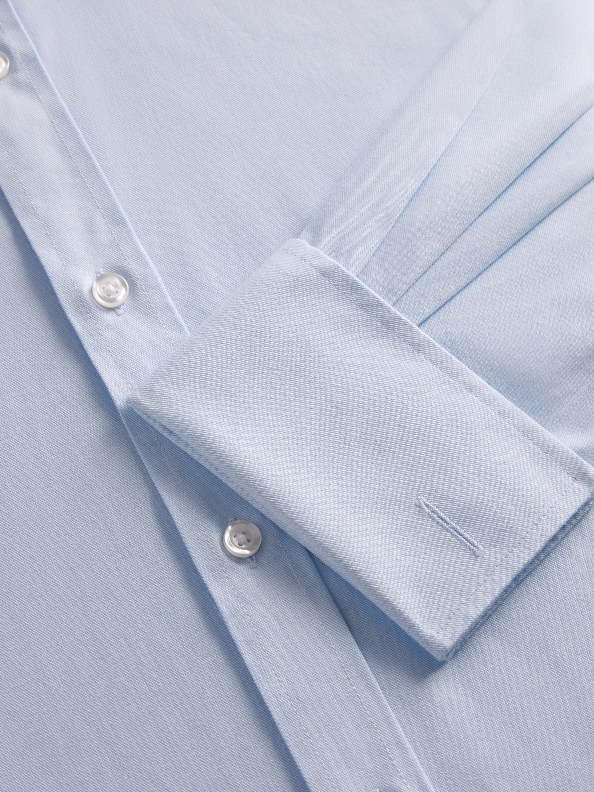 Crafted from a thicker twill-woven cotton, this essential light blue shirt is cut into a slim fit for a slightly closer, yet flexible silhouette that won't have you compromising on comfort.