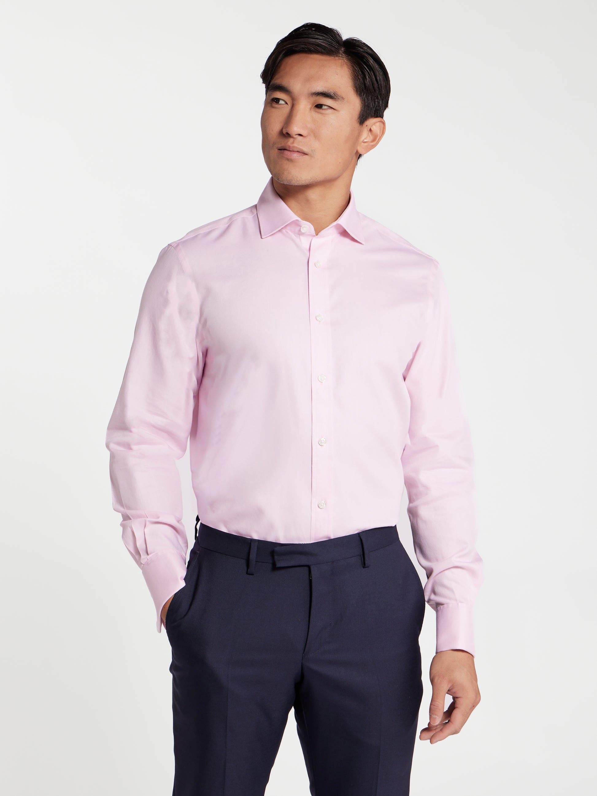 This fitted shirt combines timeless style with a refined, lightweight feel. Crafted from premium cotton sourced from America, it features a durable twill weave with a soft hand feel. Designed for versatility, it offers all-day comfort and a polished look, making it a go-to choice for both work and formal occasions. Finished with our advanced non-iron treatment, it stays smooth and crease-free from morning meetings to evening events.