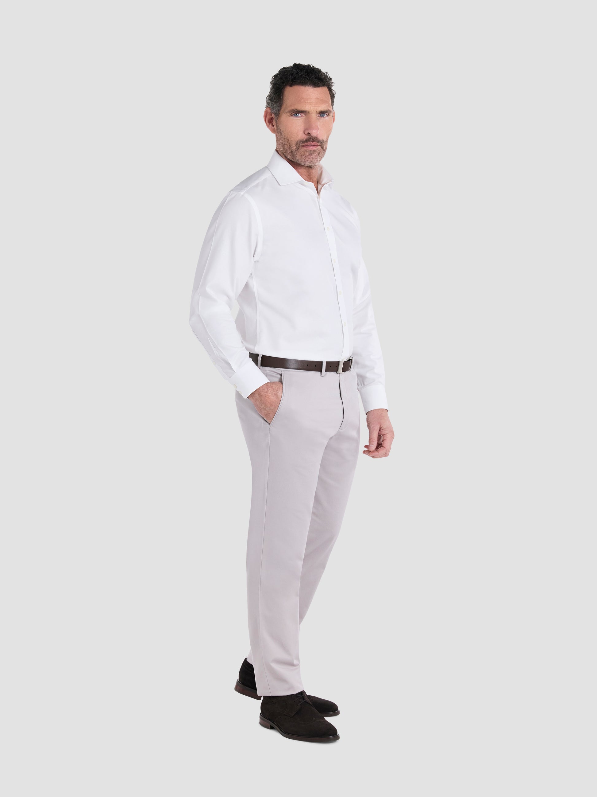 The Non-Iron Radcliffe Chino is made from mid-weight, naturally breathable cotton with a touch of stretch. These smart-casual trousers keep you comfortable, while the non-iron finish ensures a crisp, polished look with minimal effort. Choose from two fits, slim and regular, to find your perfect fit.