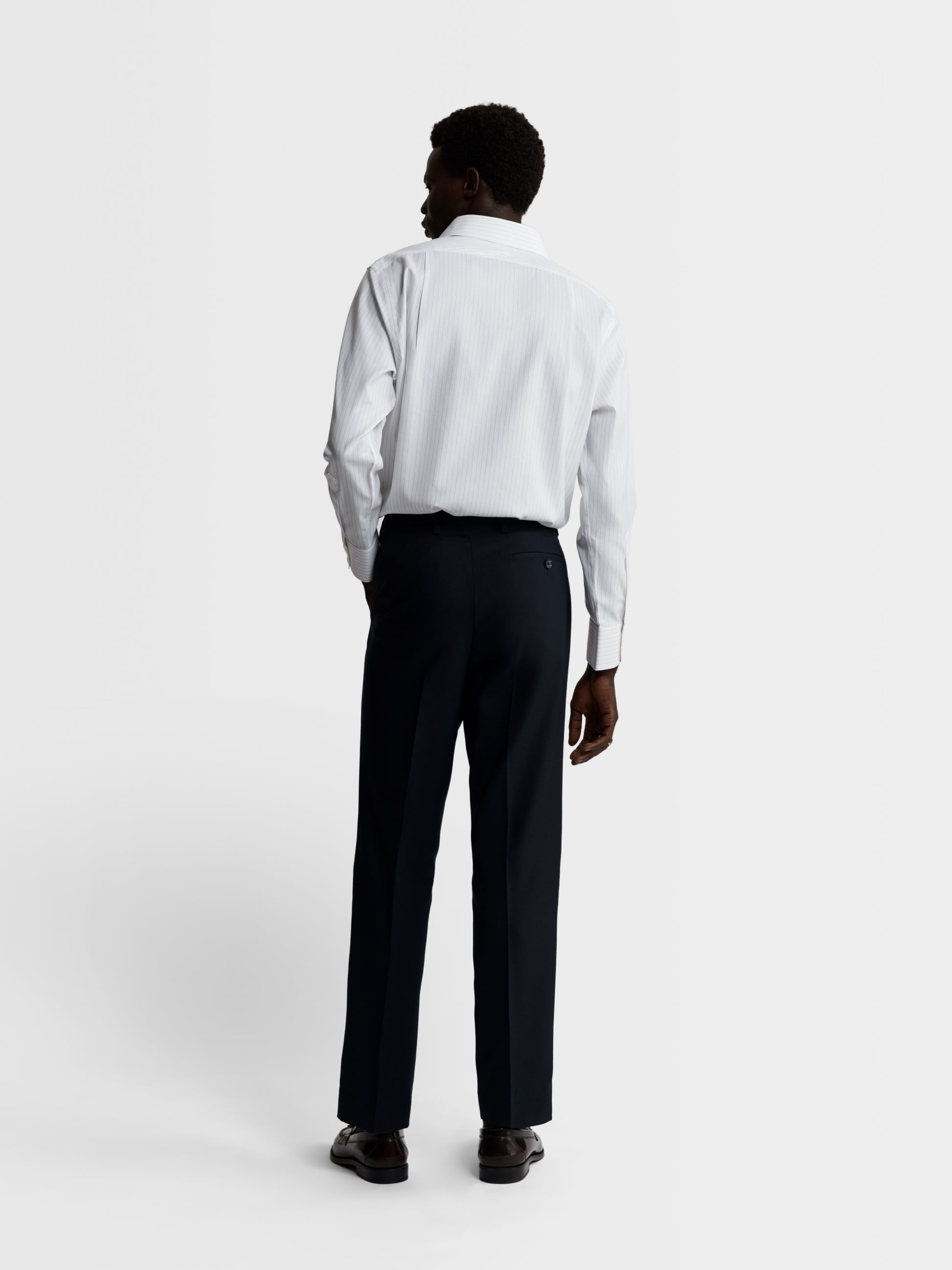 Crafted from pure cotton, this herringbone-woven shirt features fine navy-red stripes with a slightly textured feel, and an impeccably crease-resistant finish that we've insured with an innovative smoothing solution.