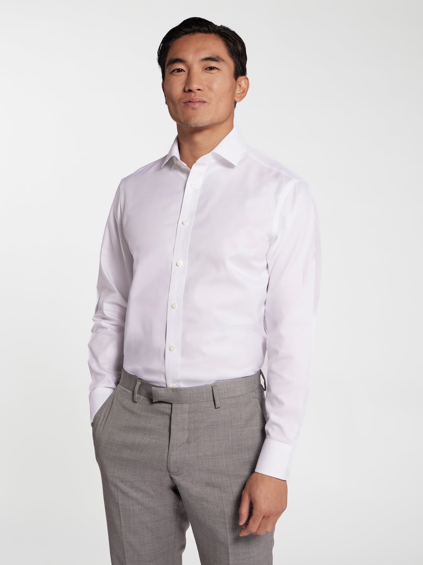 A T.M.Lewin icon, this fitted shirt reflects our heritage in shirtmaking, delivering timeless style and the perfect fit. Crafted from two-ply cotton, sourced from America, it combines a luxuriously soft hand feel with a durable, breathable twill weave. Finished with our advanced non-iron treatment, it stays smooth and crease-free from morning meetings to evening events.