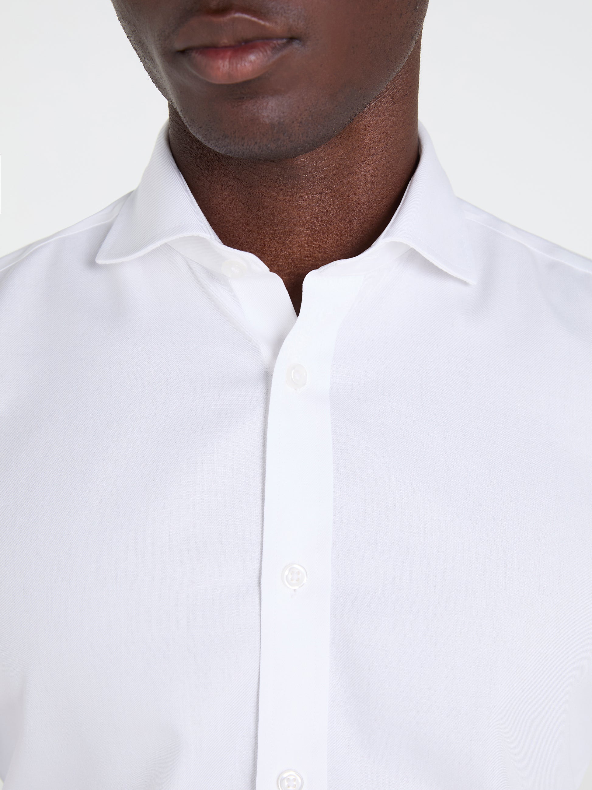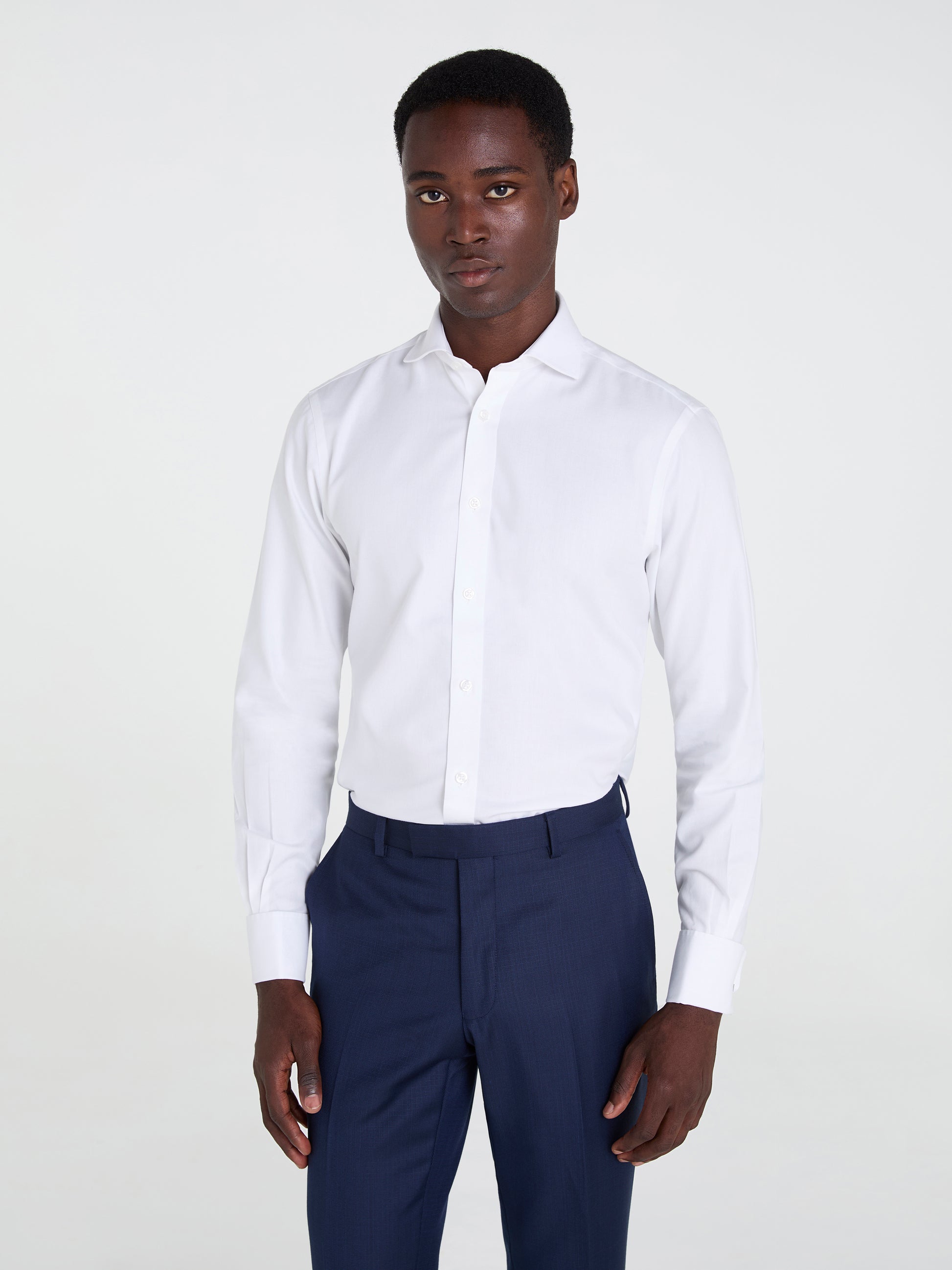 Crafted from a thicker twill-woven cotton, this essential white shirt is cut into a slim fit for a slightly closer, yet flexible silhouette that won't have you compromising on comfort.