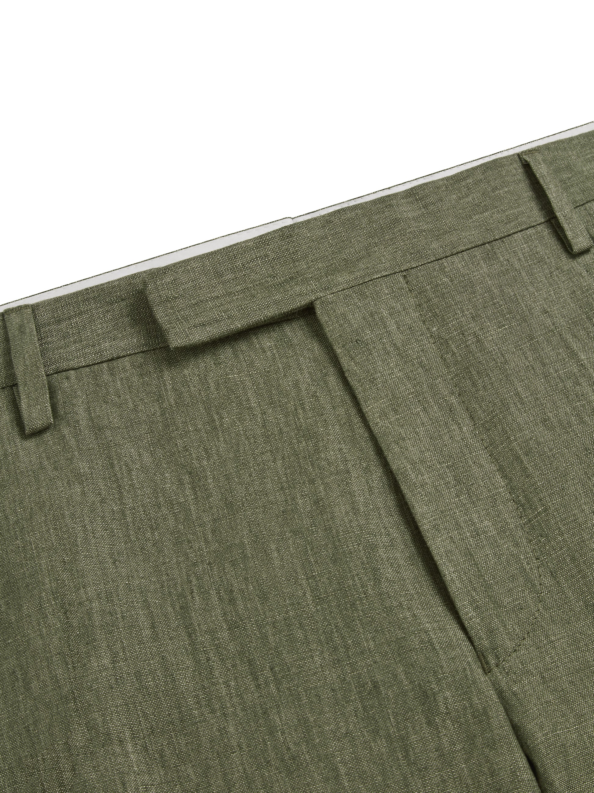 Cut in a slim fit, the green Portobello trouser is a versatile addition to your formal wardrobe. Crafted from pure linen, it offers a soft, breathable feel and natural durability, ensuring comfort in warmer weather.