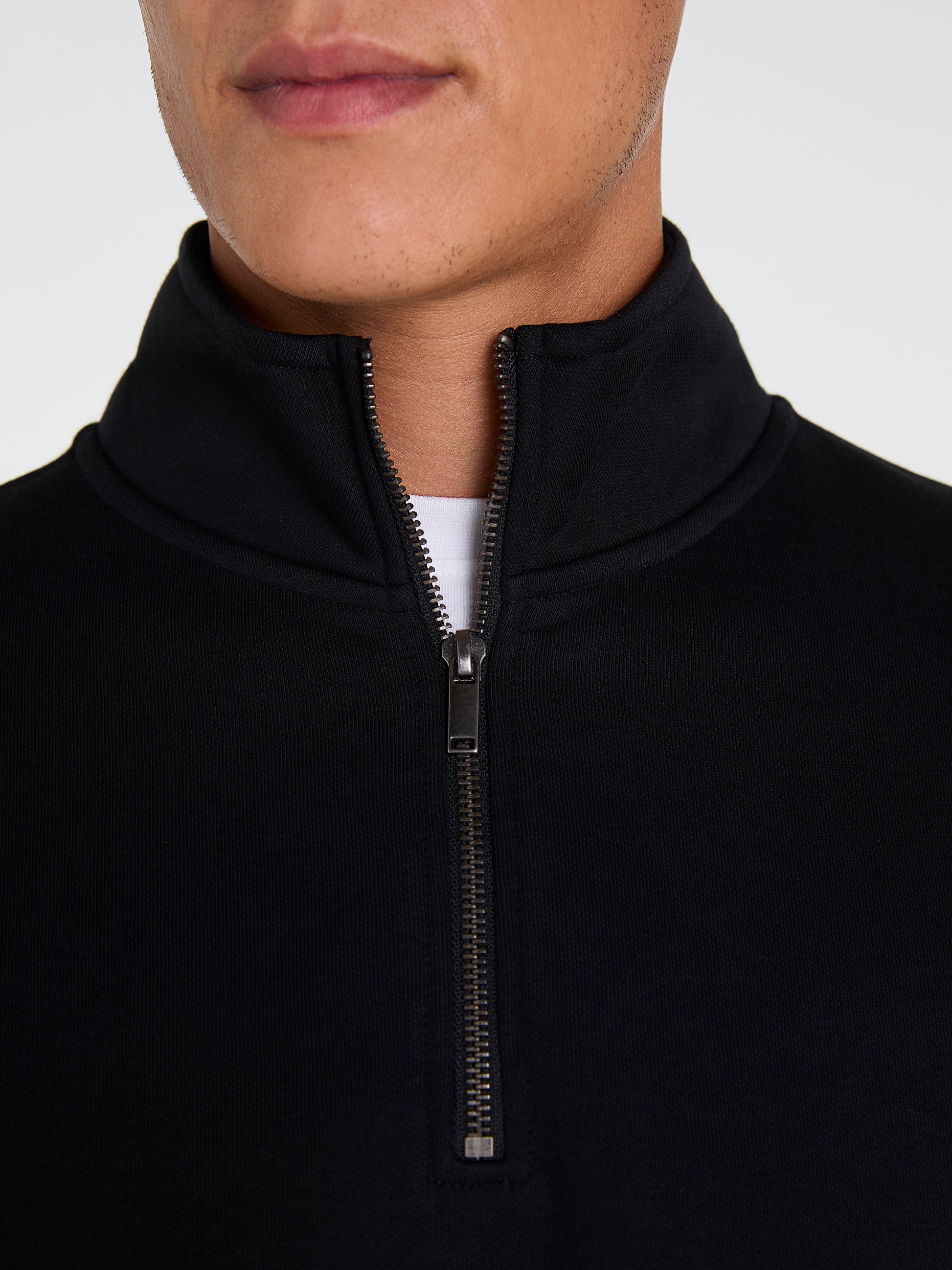 This quarter zip sweatshirt is crafted from a blend of 70% Global Organic Textile Standard (GOTS) certified organic cotton and 30% recycled polyester. The brushback fleece offers a soft, cosy feel with warmth and durability, making it perfect for layering in cooler weather.