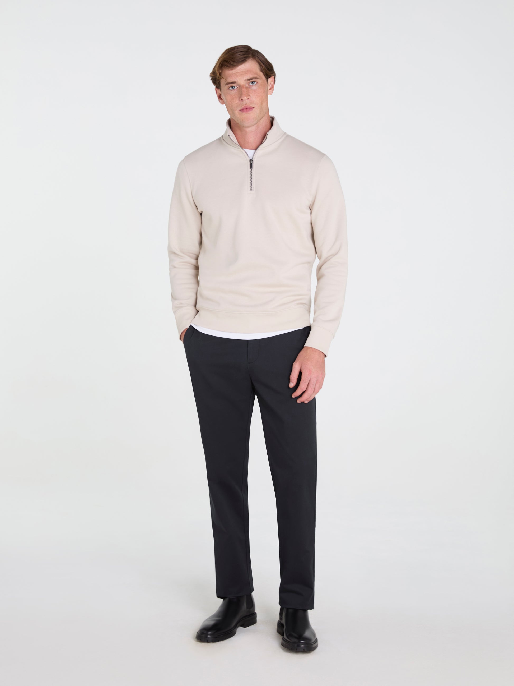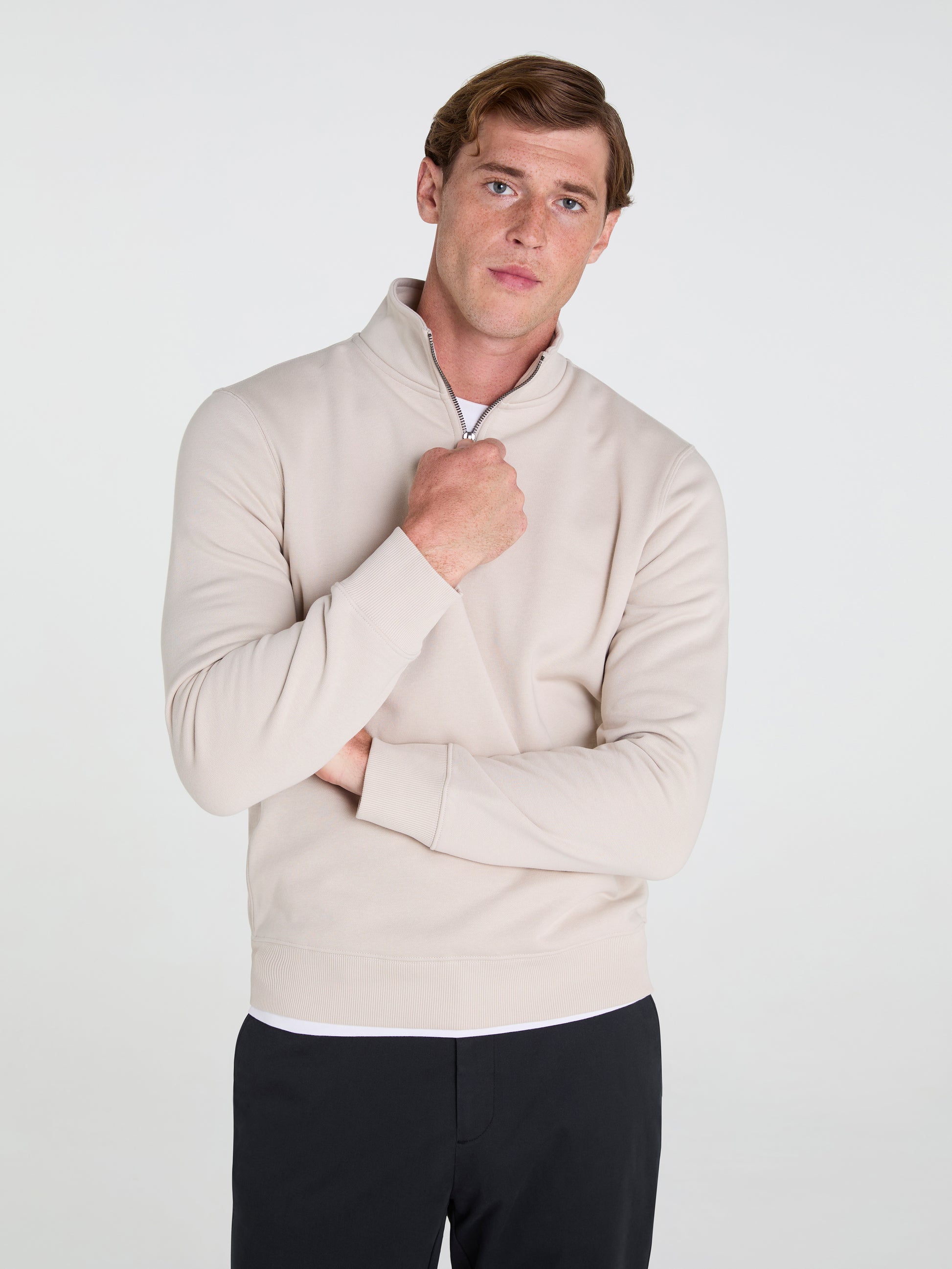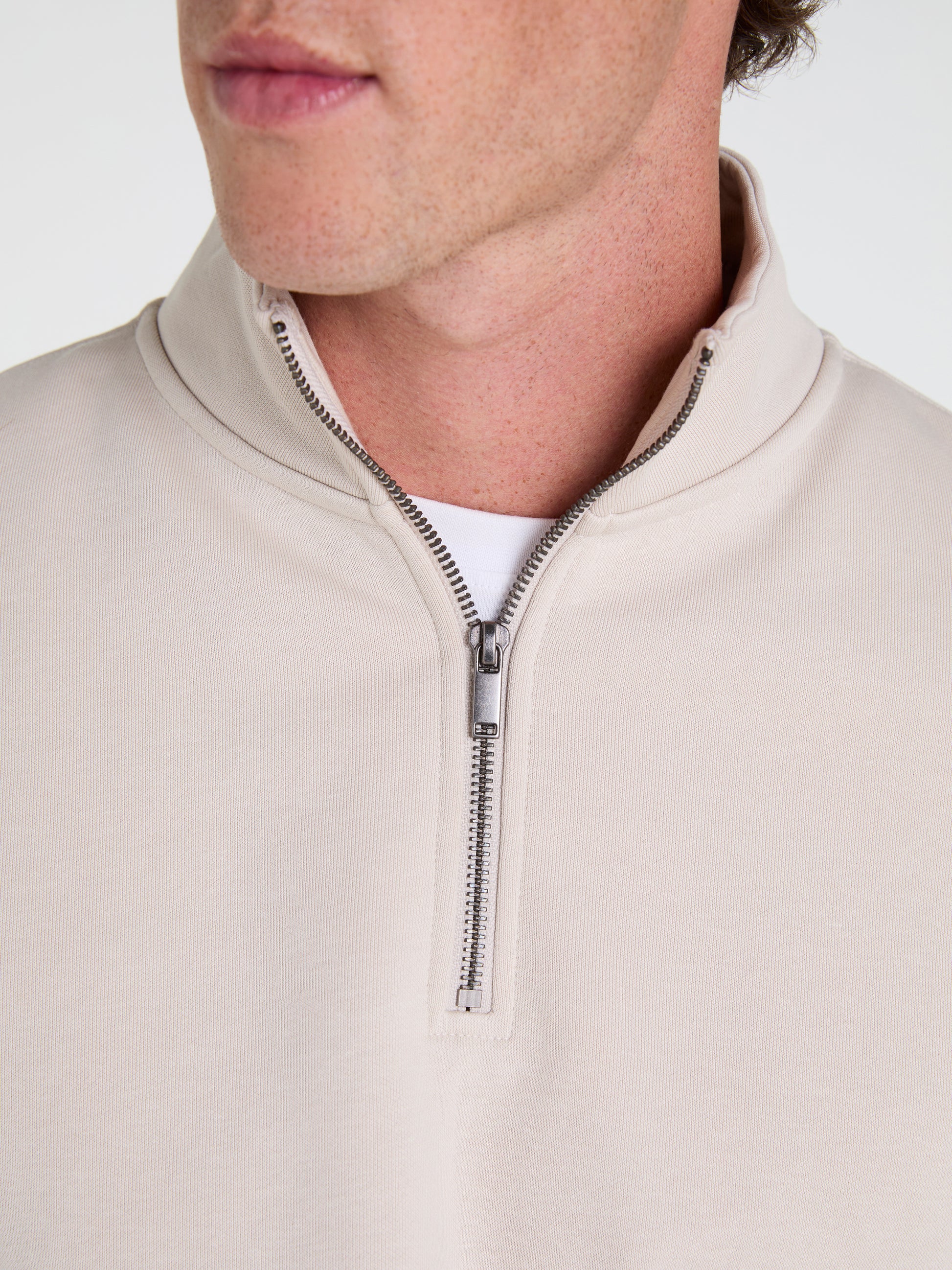 This quarter zip sweatshirt is crafted from a blend of 70% Global Organic Textile Standard (GOTS) certified organic cotton and 30% recycled polyester. The brushback fleece offers a soft, cosy feel with warmth and durability, making it perfect for layering in cooler weather.
