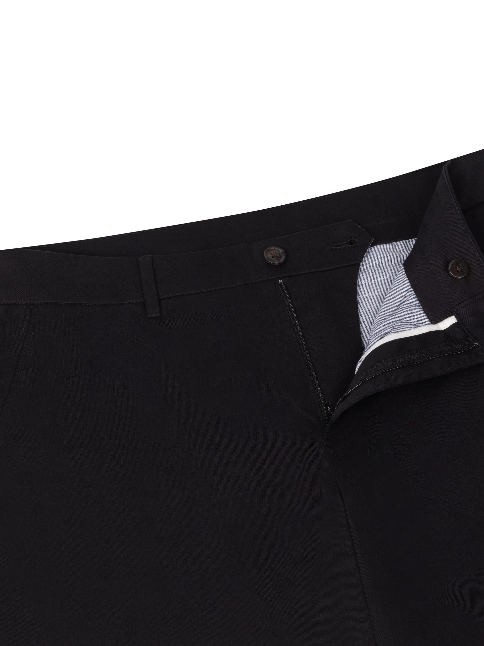 The Lightweight Chino in black is crafted from breathable organic cotton with a touch of stretch, making it ideal for warmer weather. The lighter fabric keeps things cool and comfortable, while the easy-iron finish ensures a clean, polished look with minimal effort.