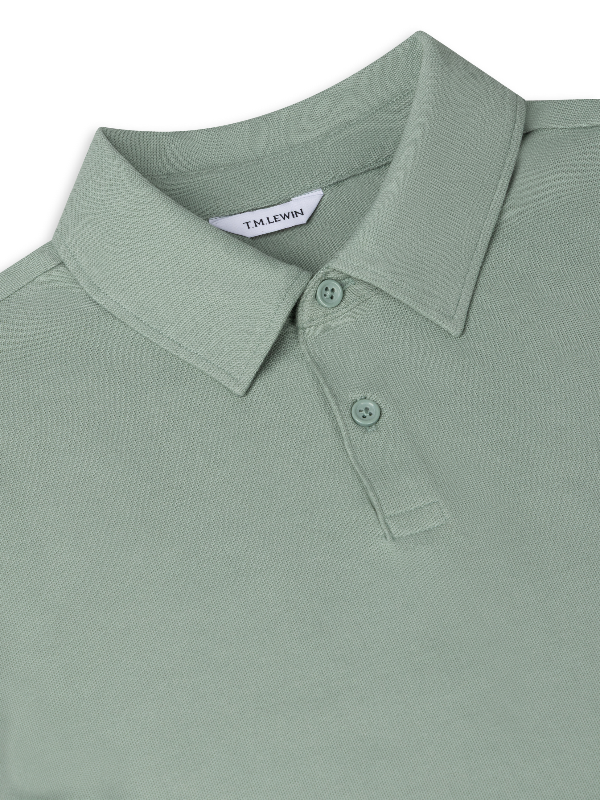 The Smart Pique Polo in dusky green is designed to bring a sharper edge to everyday dressing. Made from soft cotton pique with added elastane, it offers natural breathability with comfort stretch for easy movement. Finished with non-iron technology, the fabric stays smooth and crease free with minimal effort.