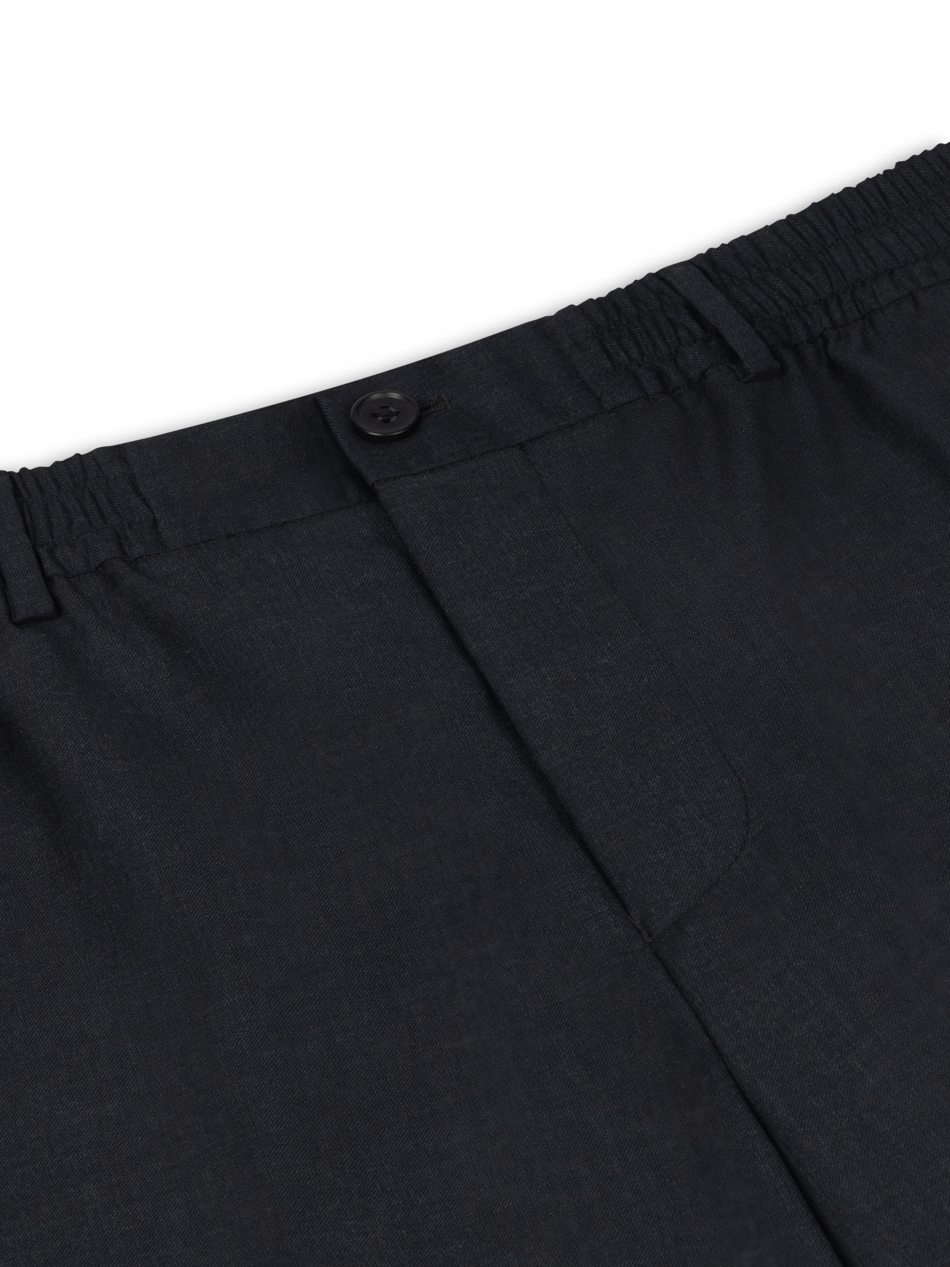 Crafted from a charcoal wool blend, the fabric offers a refined appearance with durability and ease of wear. The elasticated waistband with drawstring provides a flexible fit, making it a versatile option that can be dressed up or down with ease.