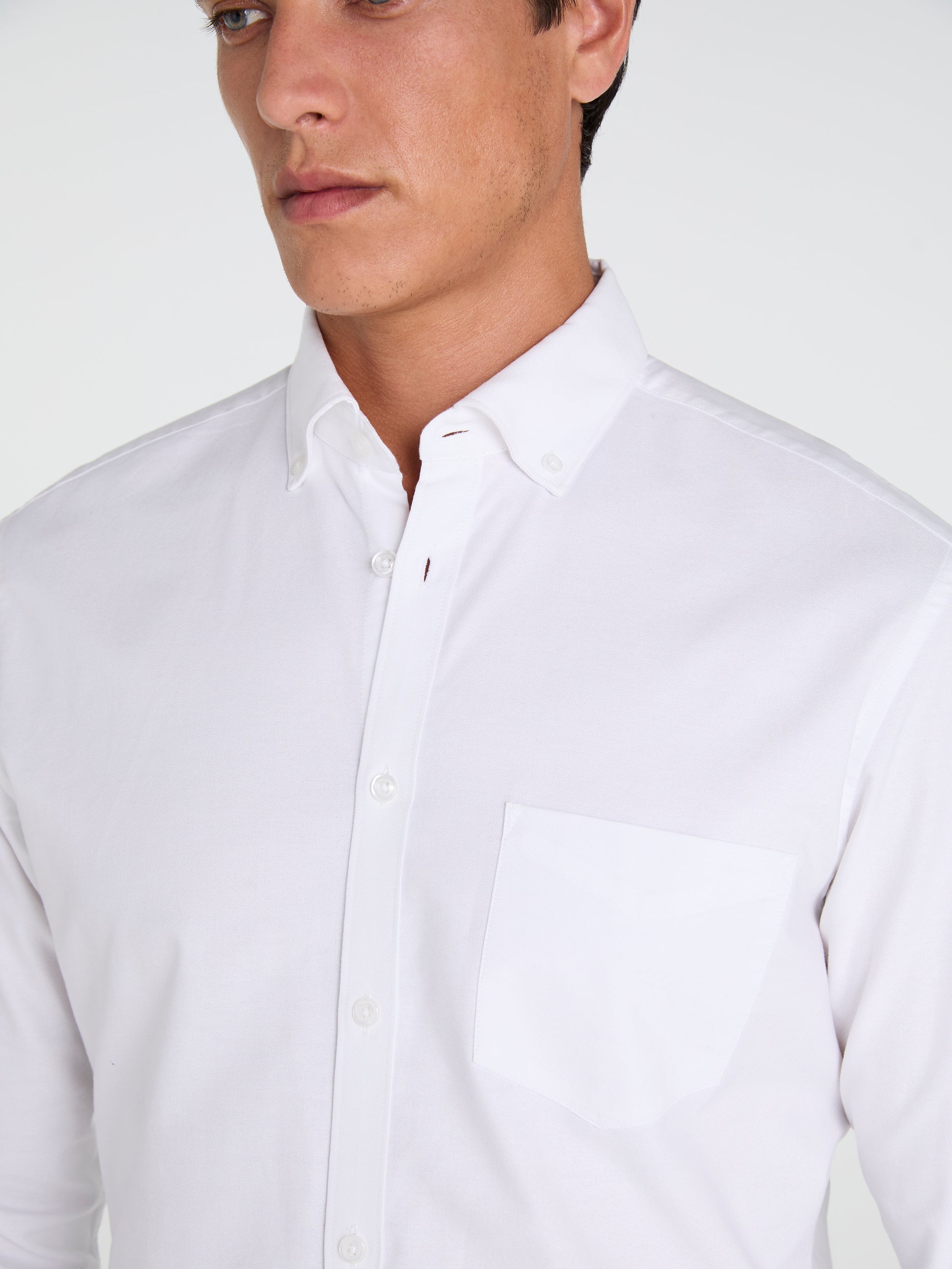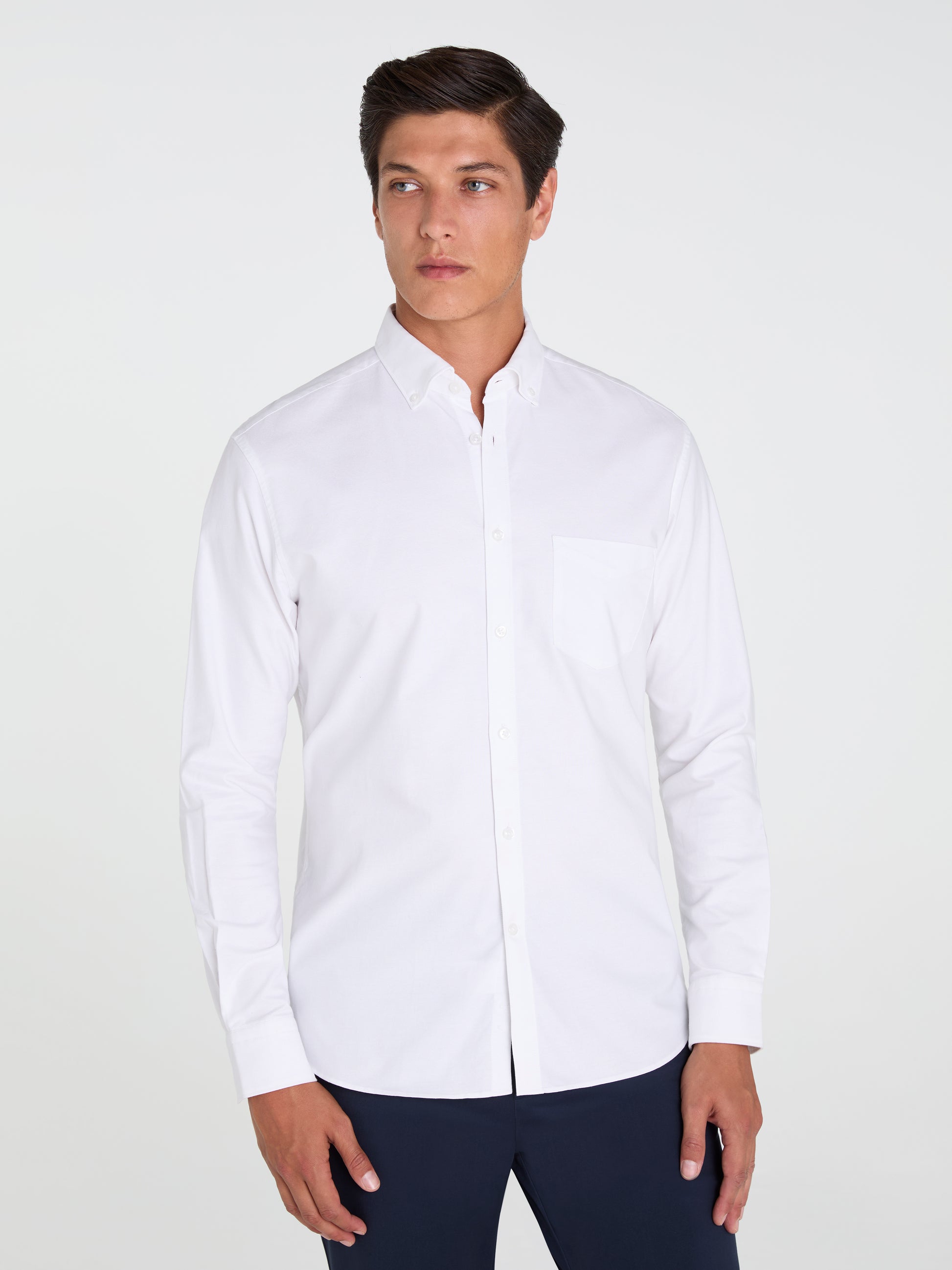 An off-duty classic. Cut from pure, oxford-woven cotton into our beloved slim fit, this white shirt is the ultimate pick for exuding confidence outside of the office. Design details include a casual button-down collar, a breast-pocket, and a rounded cuff; all of which deliver an understated, yet impactful finish. Style with your favourite jeans or chinos for a more elevated look.