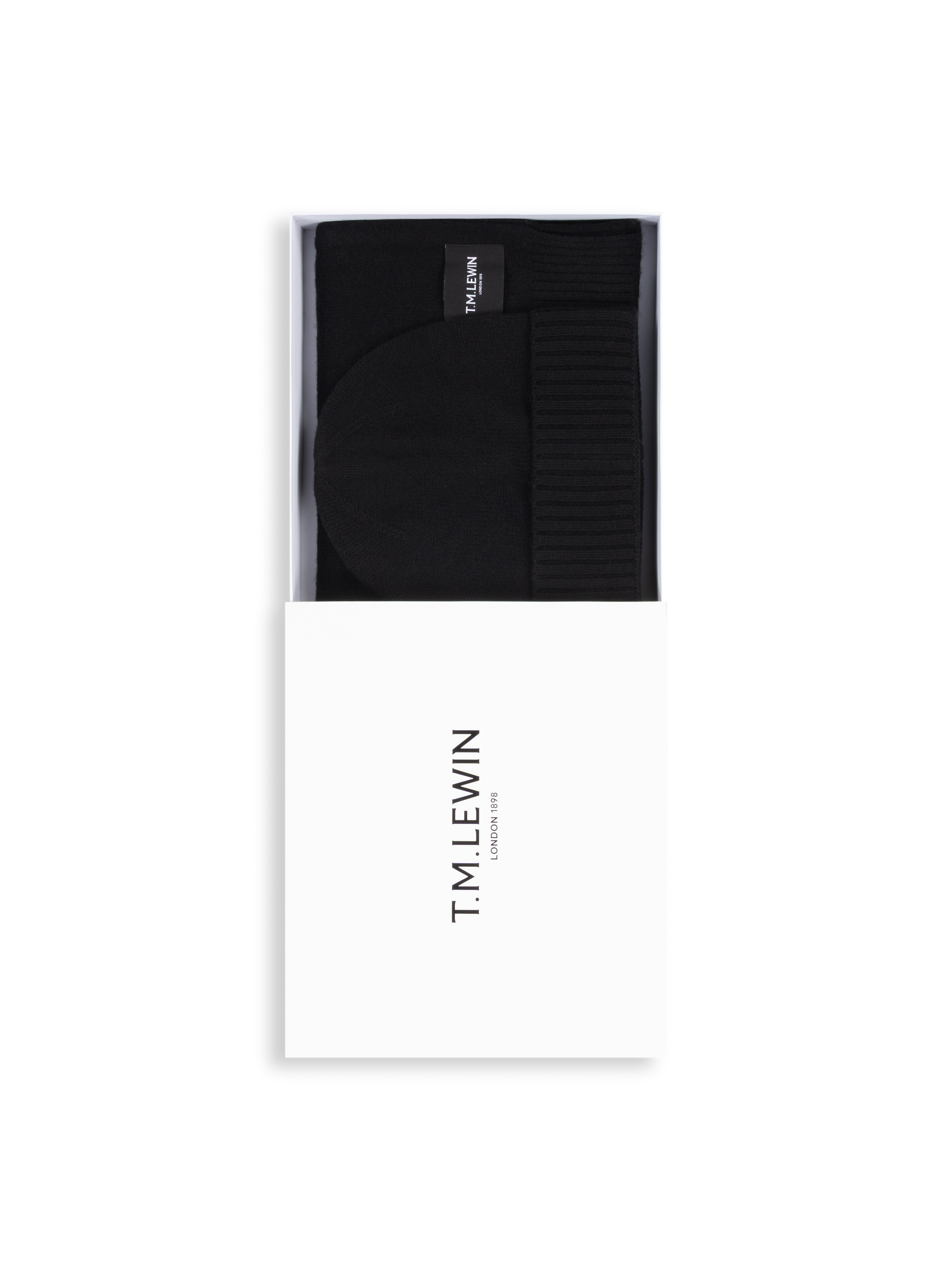 A practical yet polished gift, perfect for welcoming the colder months in style. Crafted from 100% wool for natural warmth, softness, and breathability. Inside a signature T.M.Lewin presentation box, you’ll find a ribbed cuff beanie and a jersey-stitched scarf with ribbed ends, finished with our woven logo label.