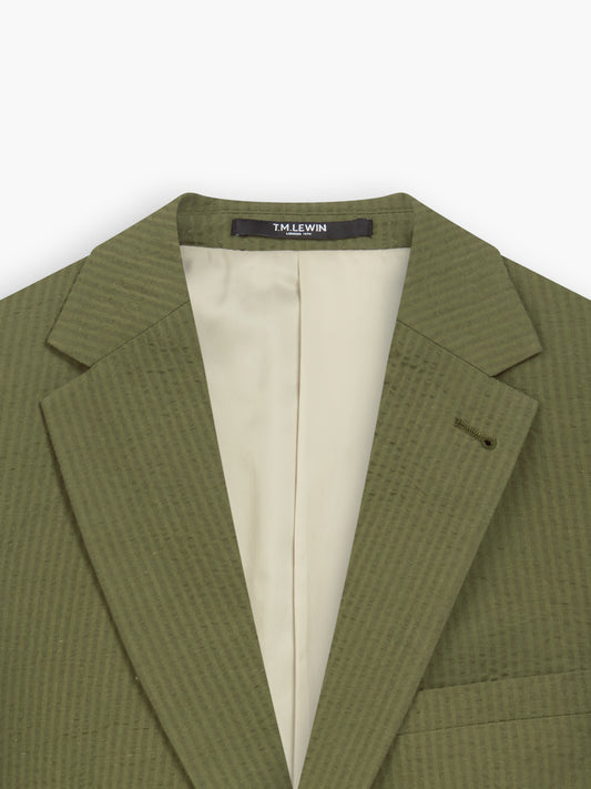 OutletThe Rhodes Seersucker Blazer Green Slim Fit Collar