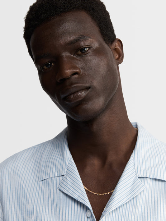 OutletThe Short Sleeve Linen Shirt Blue Regular Revere Collar