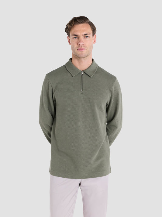 New InThe Jacquard Zip-Neck Polo Olive