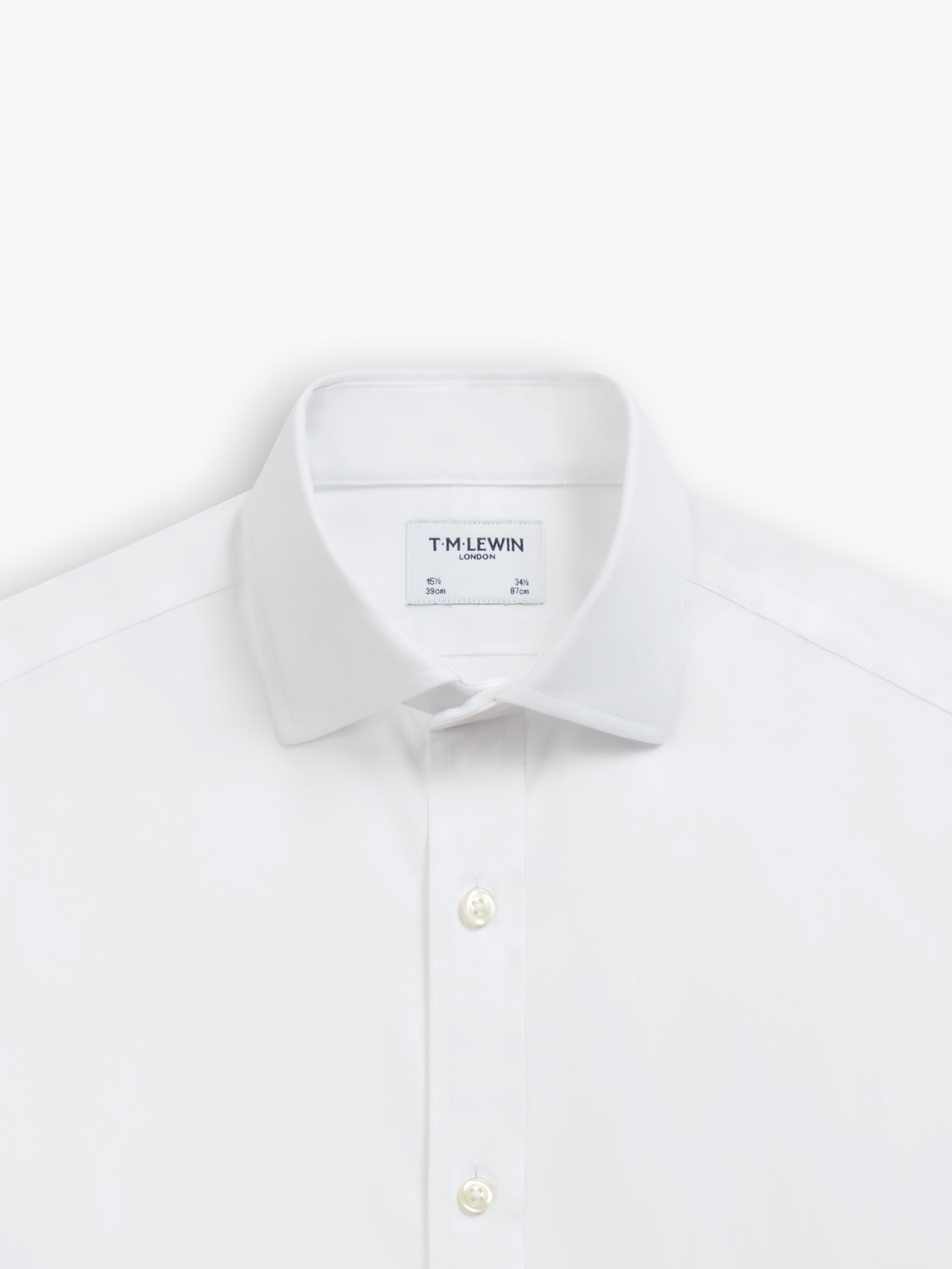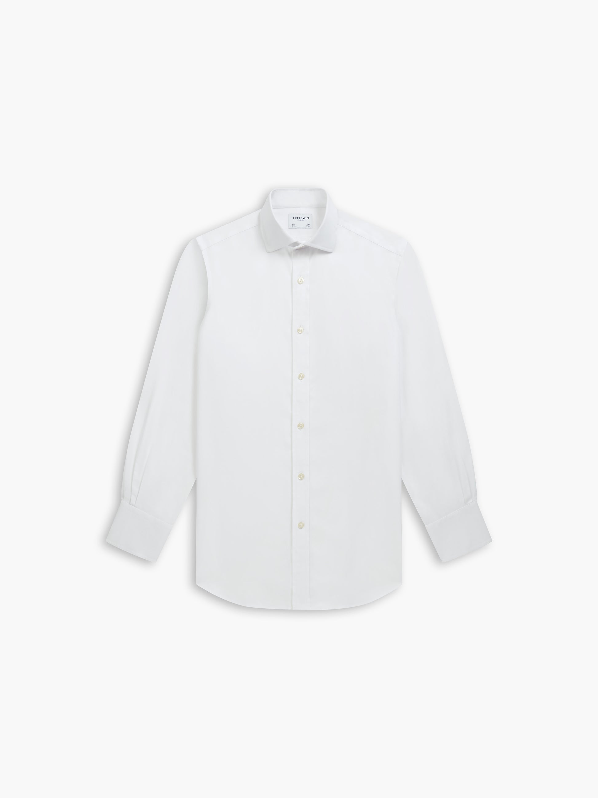 Crafted from pure cotton in a durable plain-twill weave, this timeless white shirt is cut into a fitted silhouette for super sleek styling.